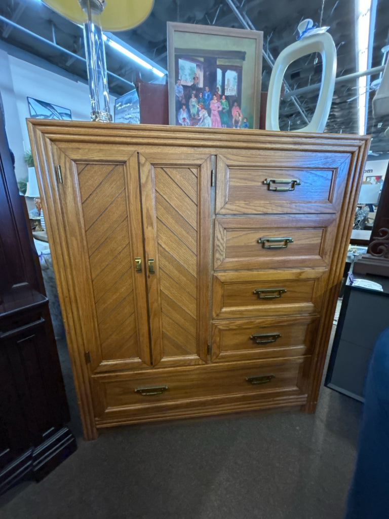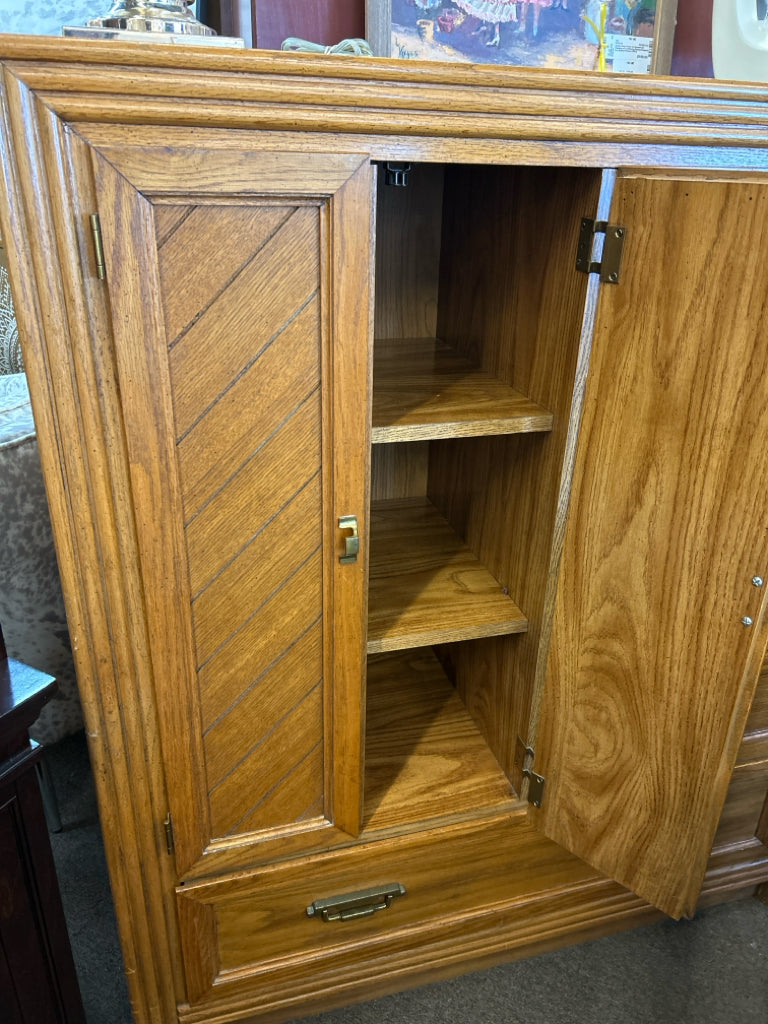 (AS IS - Wear) 5-Drawer 2-Door Oak Finish Armoire