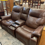 Chocolate Brown Leather Double Recliner & Console Ctr. w/Cupholders