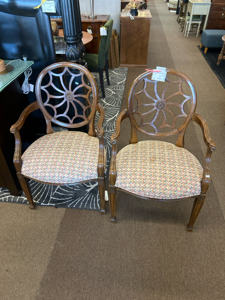 Set of 2 Federal Style Web Back Armchairs w/Basketweave Upholtered Seats