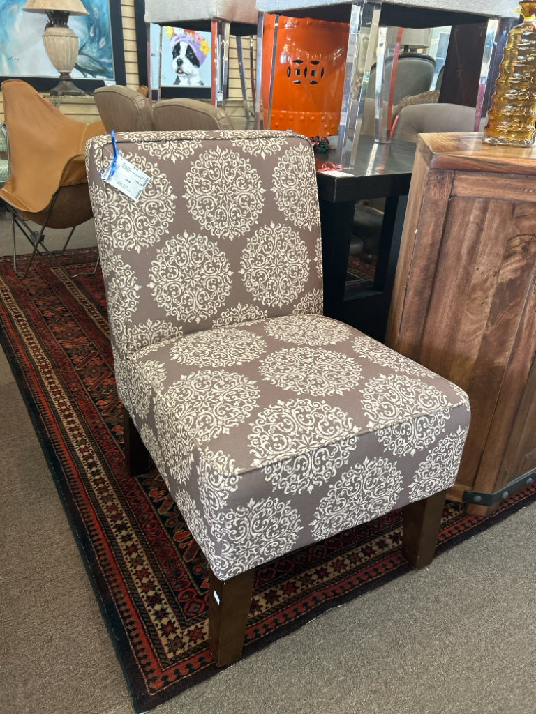 Taupe W/ Cream Medallion Design Accent Chair