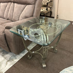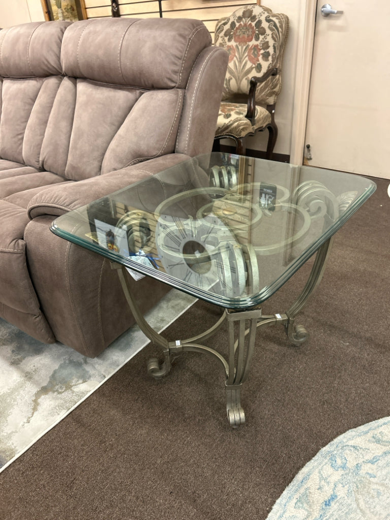Rectangular Beveled Glass Top on Heavy Metal Scroll Base W/Flower & Leaf Accents