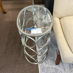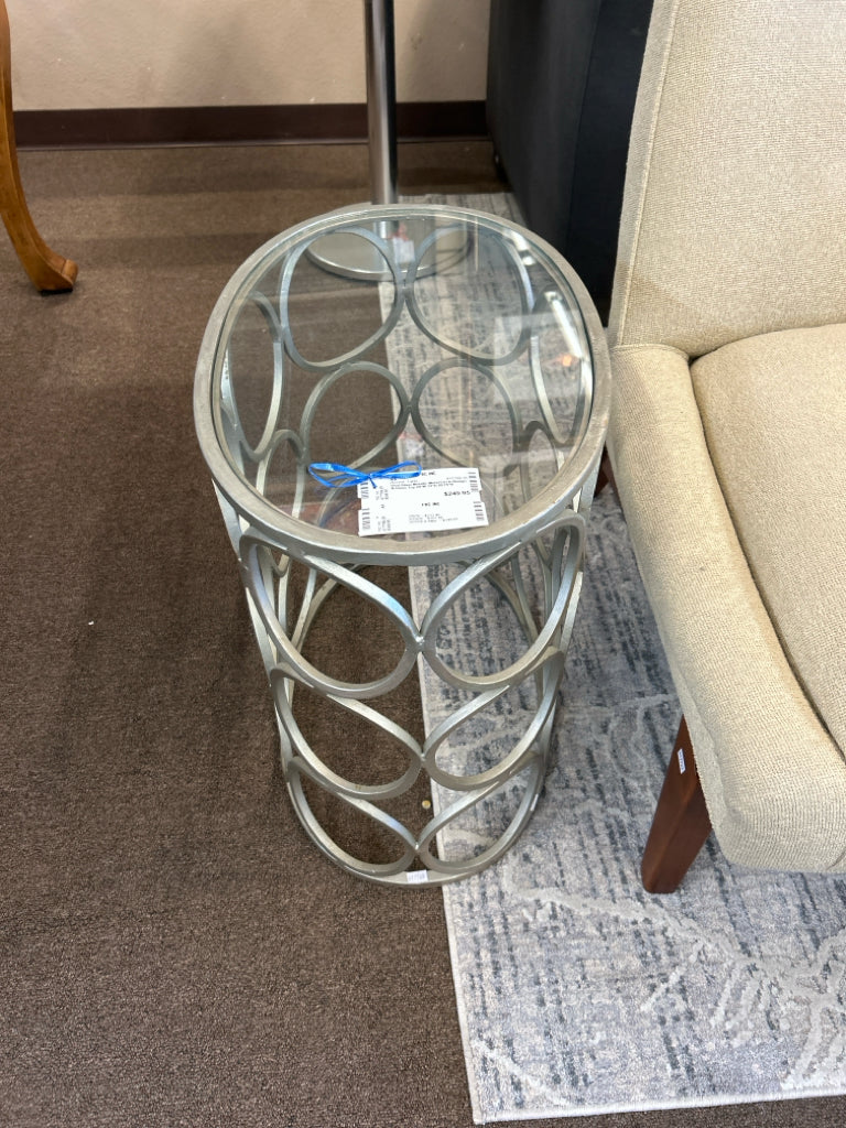 Oval Silver Metallic Metal Circle Design & Glass Top 20"W 13"D 20.75"H