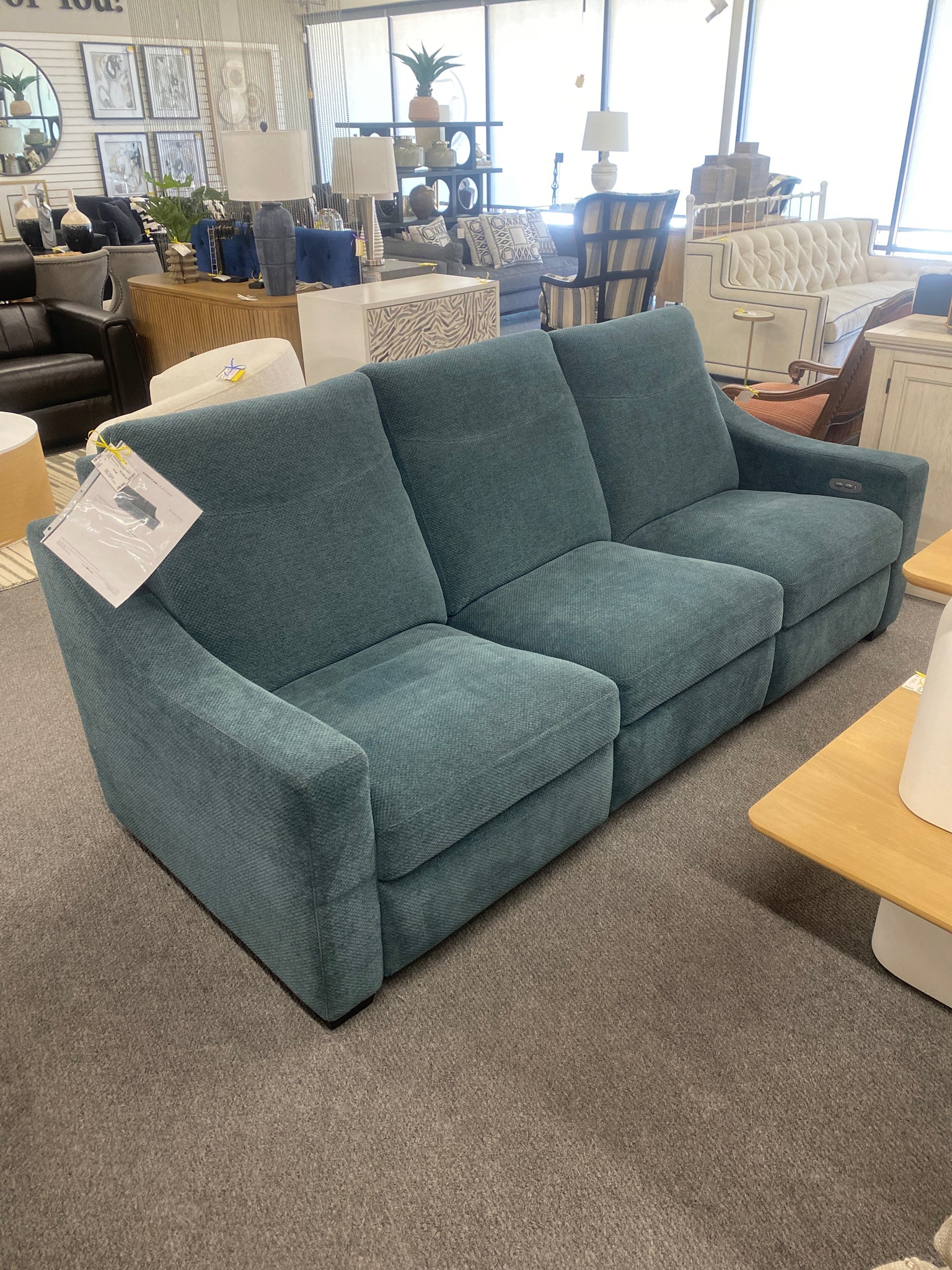 Sarasota Pashmina Teal Upholstered Dual Power Reclining Sofa