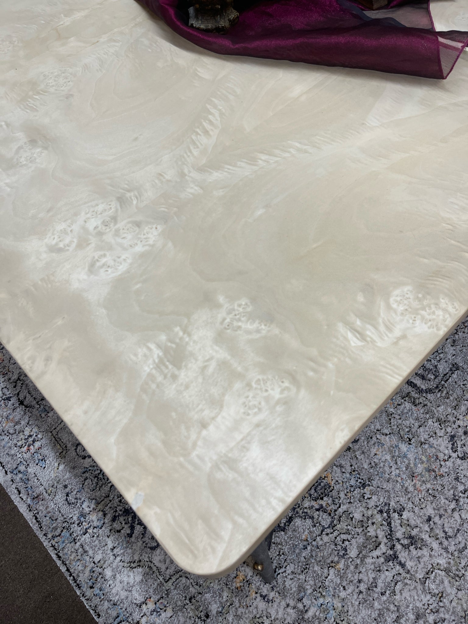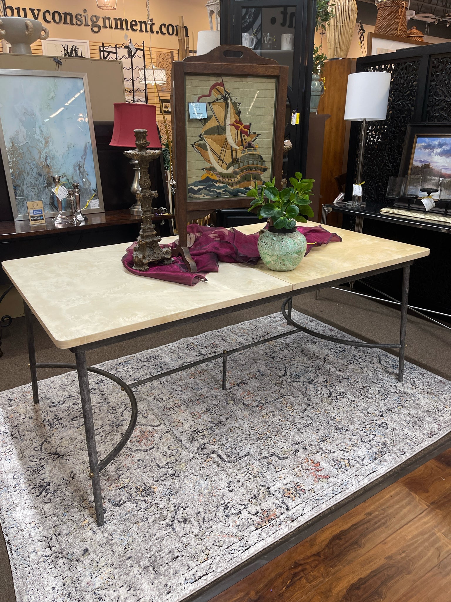 *** (AS IS - Wear) Light Colored Extension Rue Burle Dining Table on Metal Base