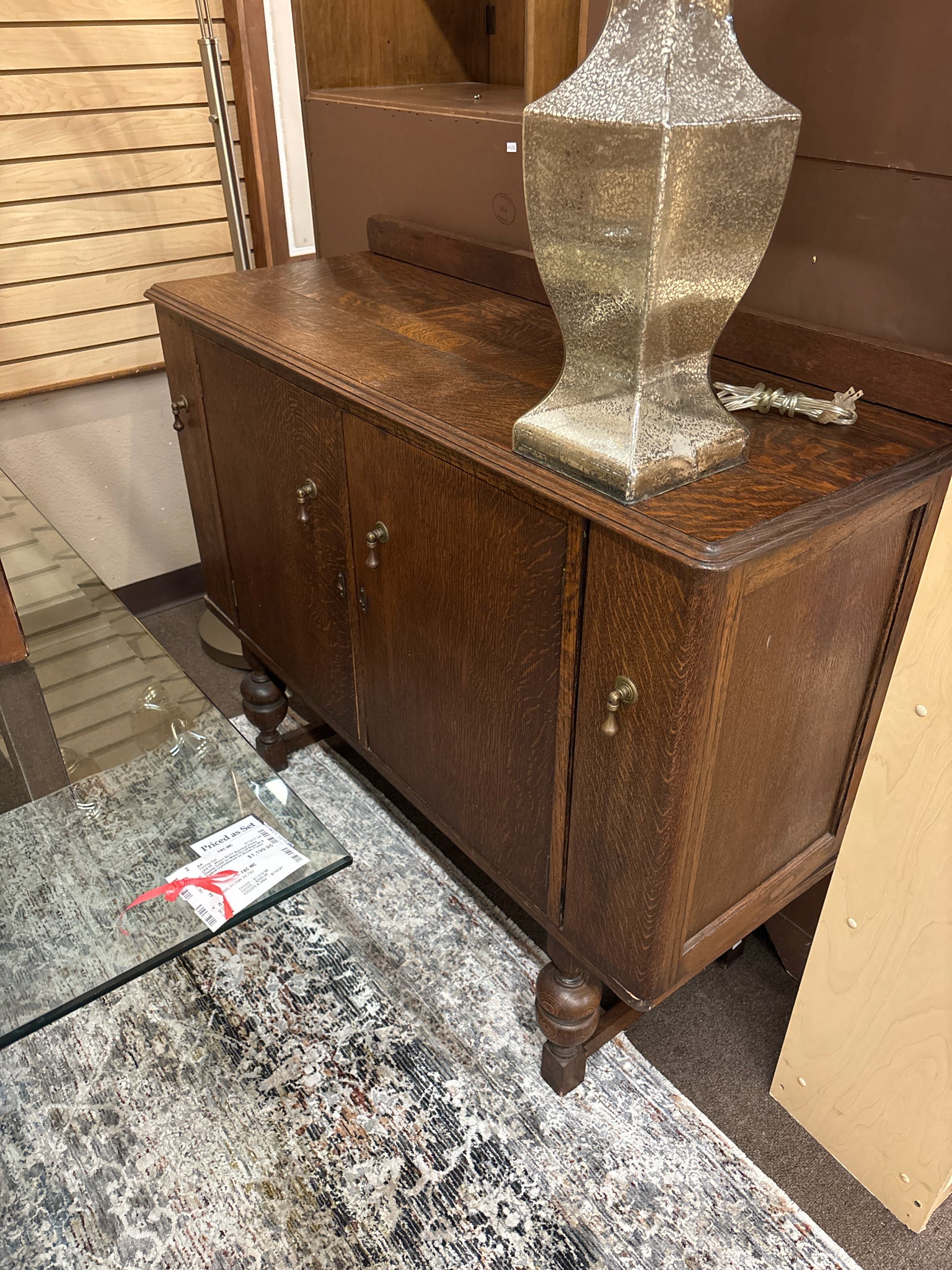 4-Door Tiger Oak Buffet Modified into Bar Cabinet