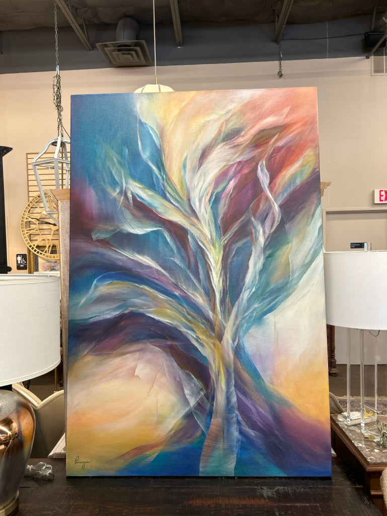 60x40 "Hope Arising" Pastel Blues/Pinks Acrylic on Wrapped Canvas Original by Gail Perazzini