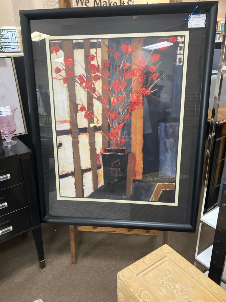 LARGE BLACK FRAMED ANJU JAPANESE LANTERNS PRINT 41X51