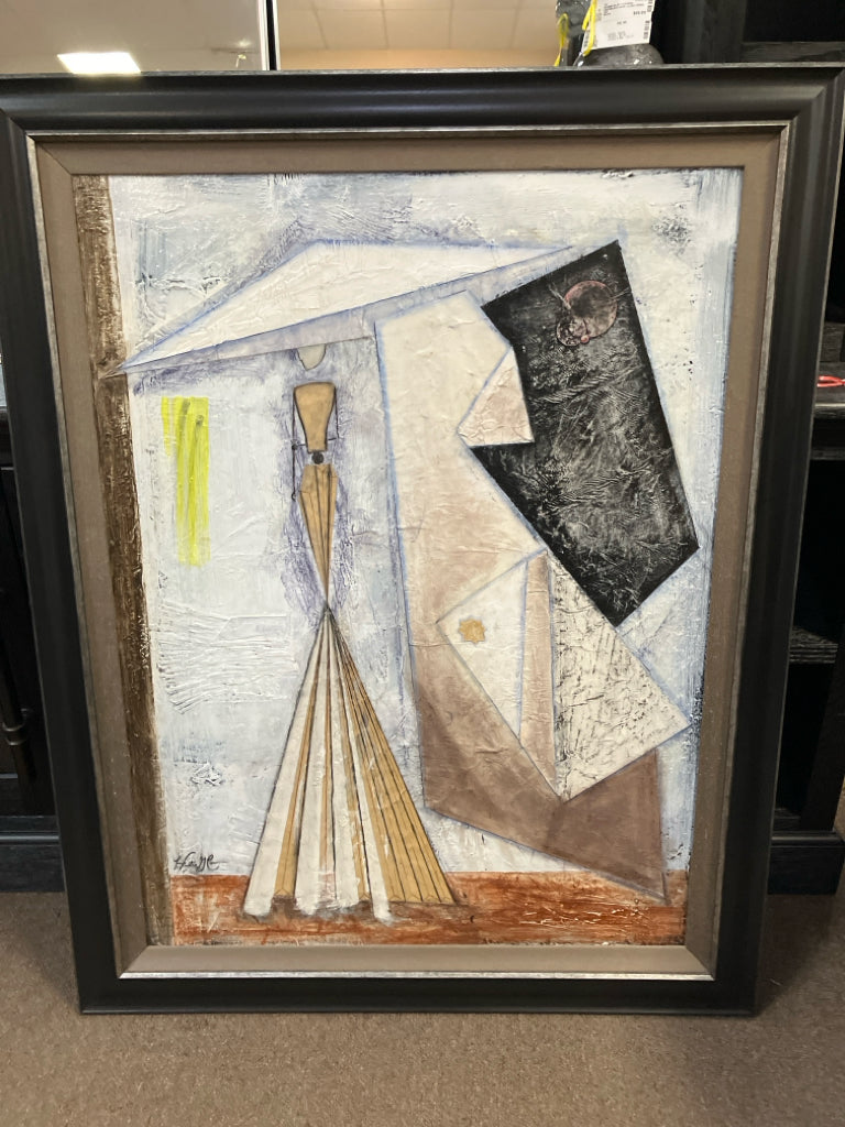 BLACK/SILVER FRAMED ORIGINAL ABSTRACT PAINTING BY TATIANA GEORGEIEVA 47X37