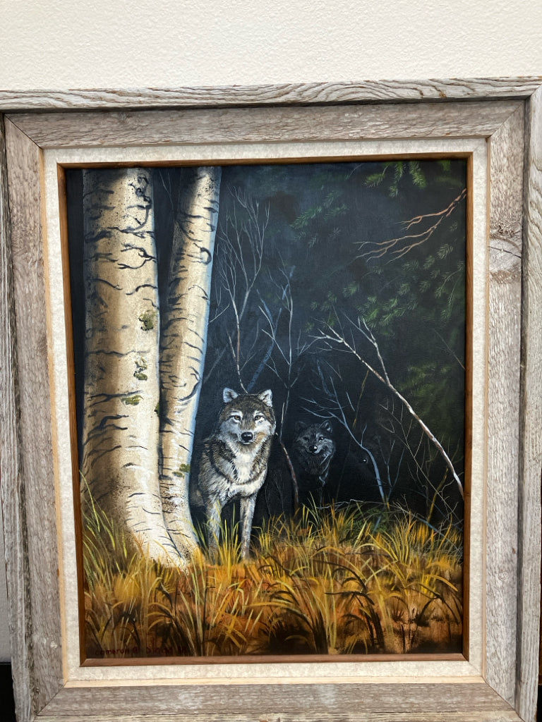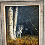 WOOD FRAMED ORIGINAL OIL PAINTING " THE 3 WOLFS BY CAMERON BLAGG 29W 2D 35H