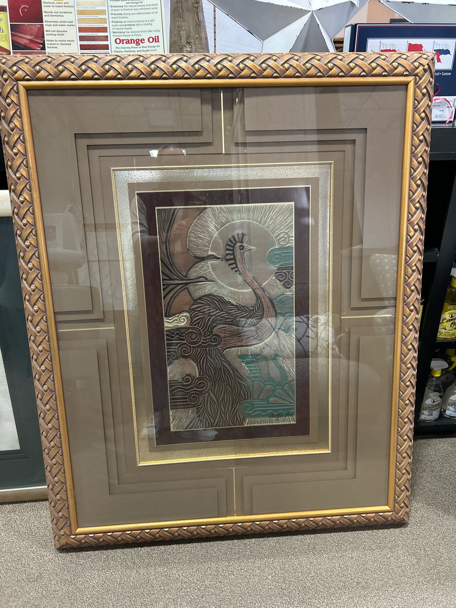 ANTIQUE GOLD FRAMED/MATTED BIRD WALL ART 42X53