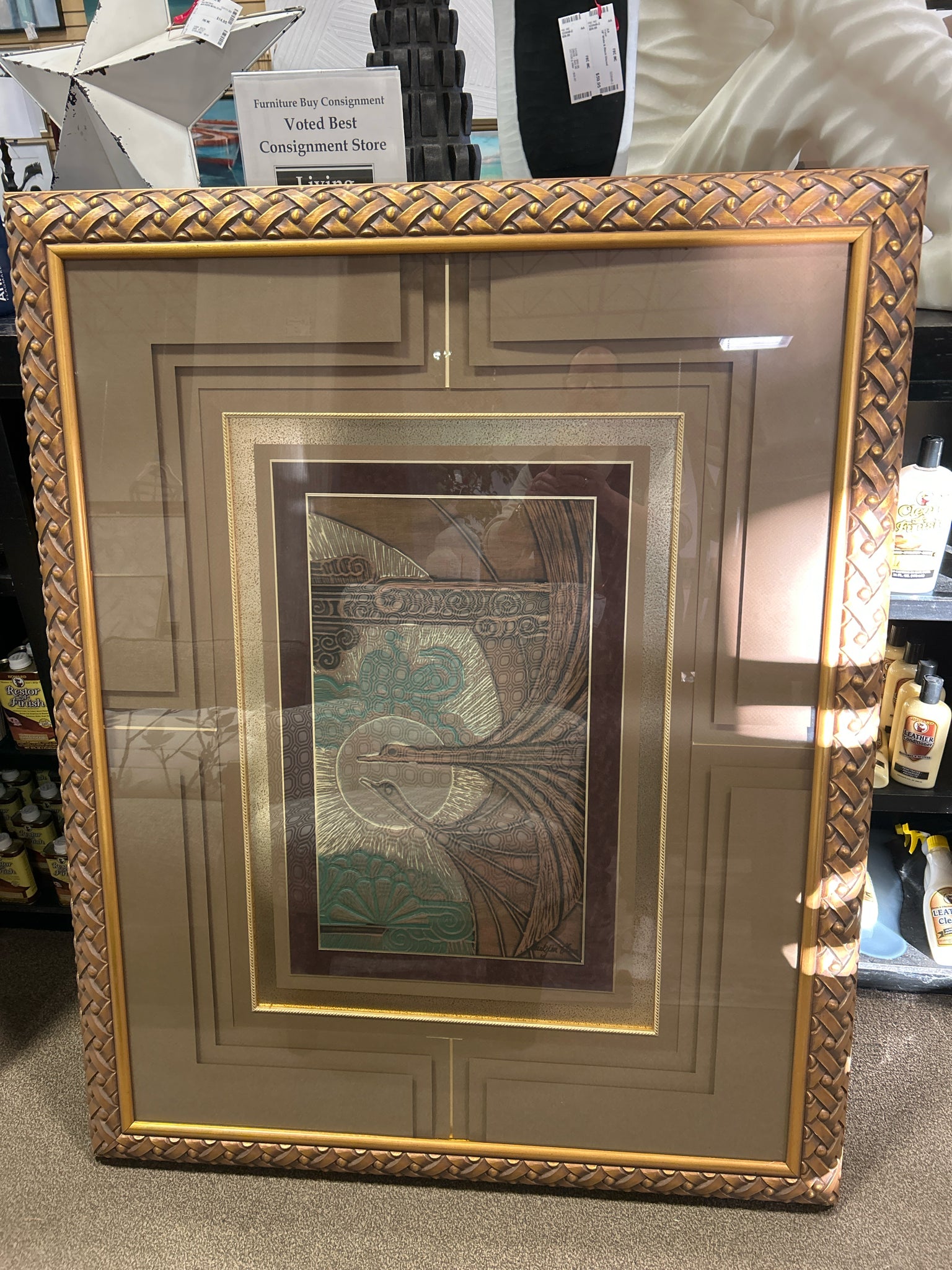 ANTIQUE GOLD FRAMED/MATTED BIRD WALL ART 42X53