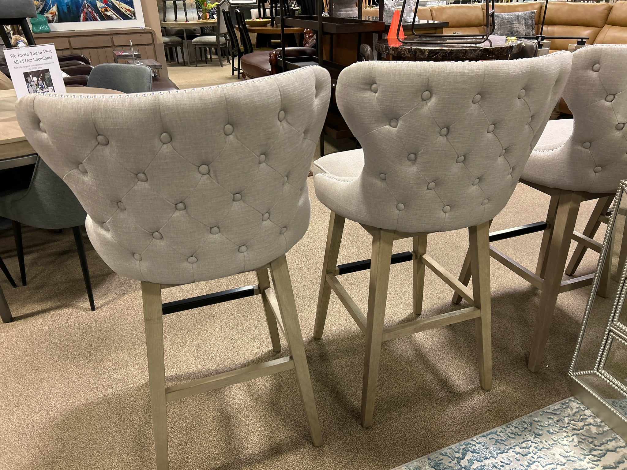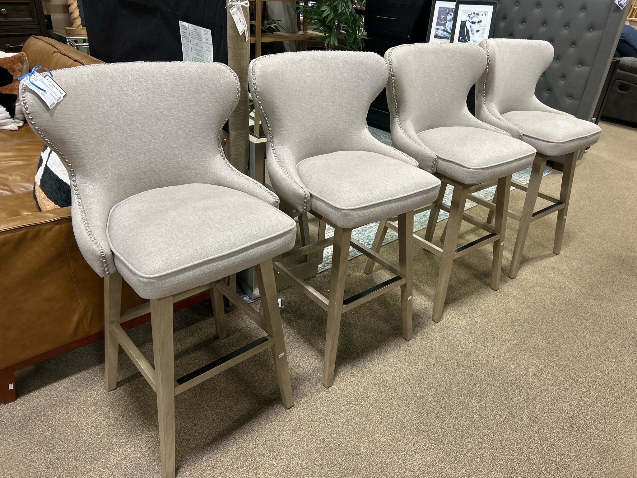 Set of 4 - Gray Upholstered Bar Stool W Nailheads 30"