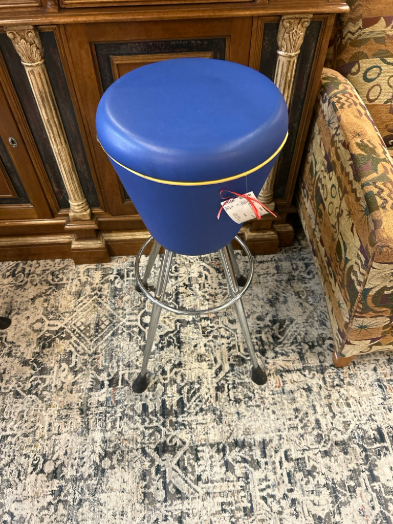 (AS IS) Royal Blue Cone-Shaped Swivel Barstool on Chrome Frame (32.5" Tall)