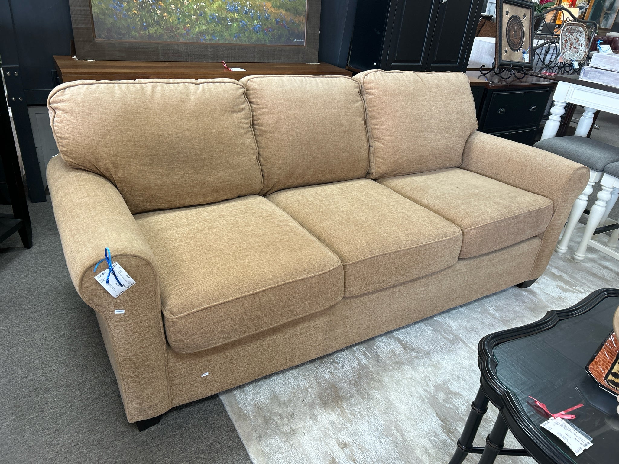 Light Gold Fabric 3 Cushion 84" Sofa.