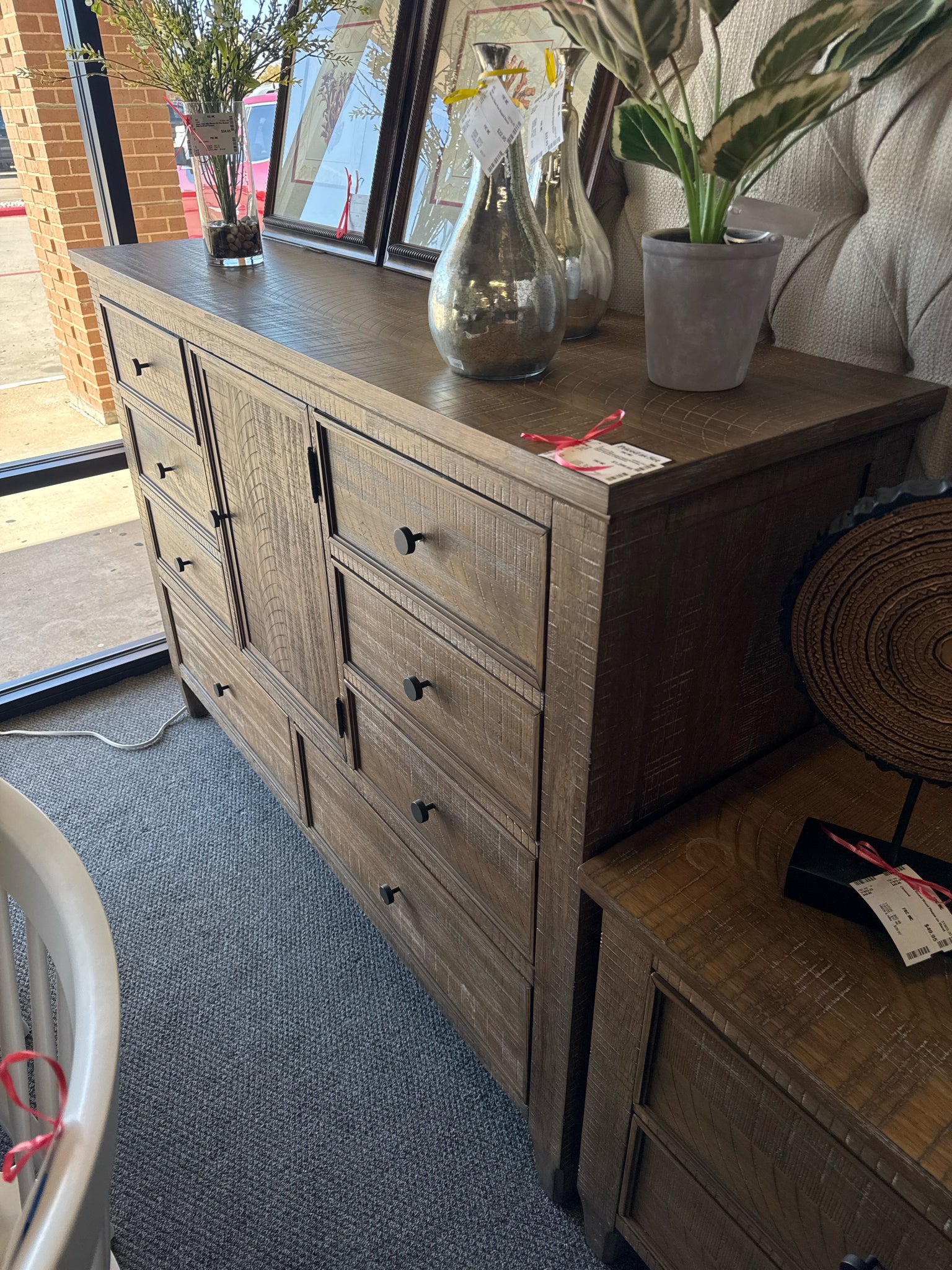 Driftwood Distressed Finish 8-Drawer 1-Door Dresser w Nightstand