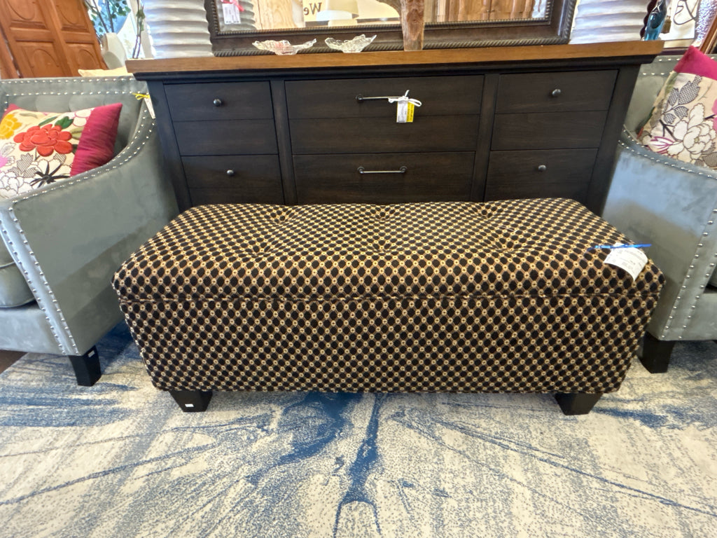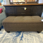 Button-Tufted Black W/ Gold Lattice Design Upholstered Bench