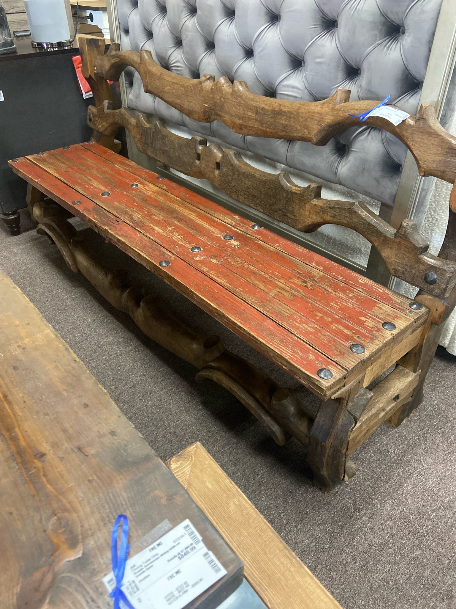 Rustic dark wood bench