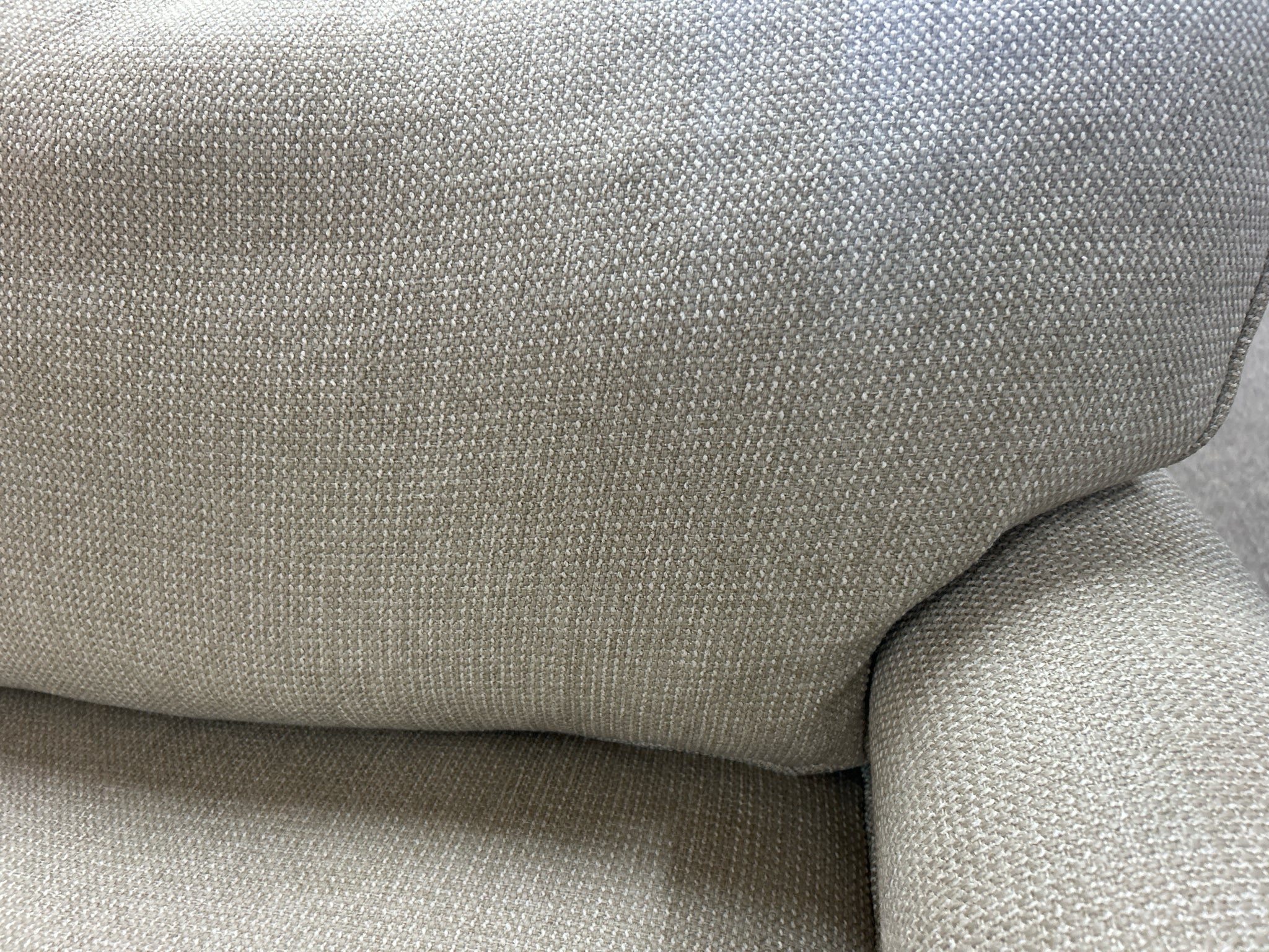 Cream Fabric Wedge Shape Sectional 100" Each Side.