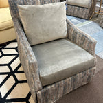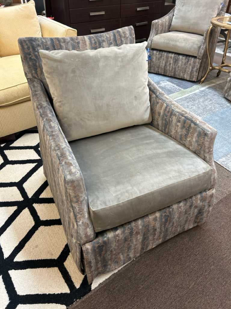 Greys/Beige Abstract Velour Upholstery W/ Taupe Seat & Back Cushions