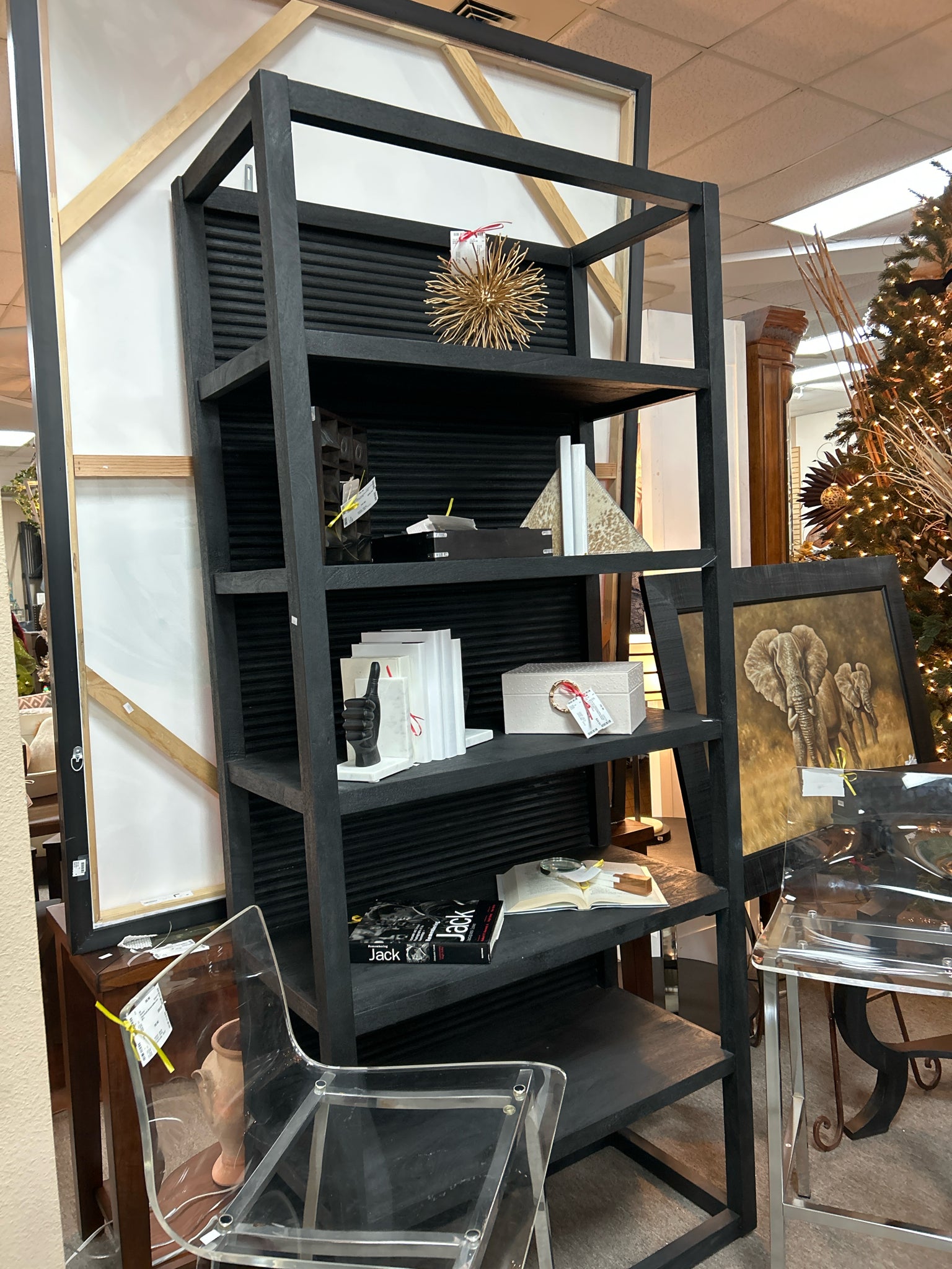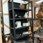Black Wood Bookshelf with Reeded Design Back, 5 Shelves. 38x18x85"