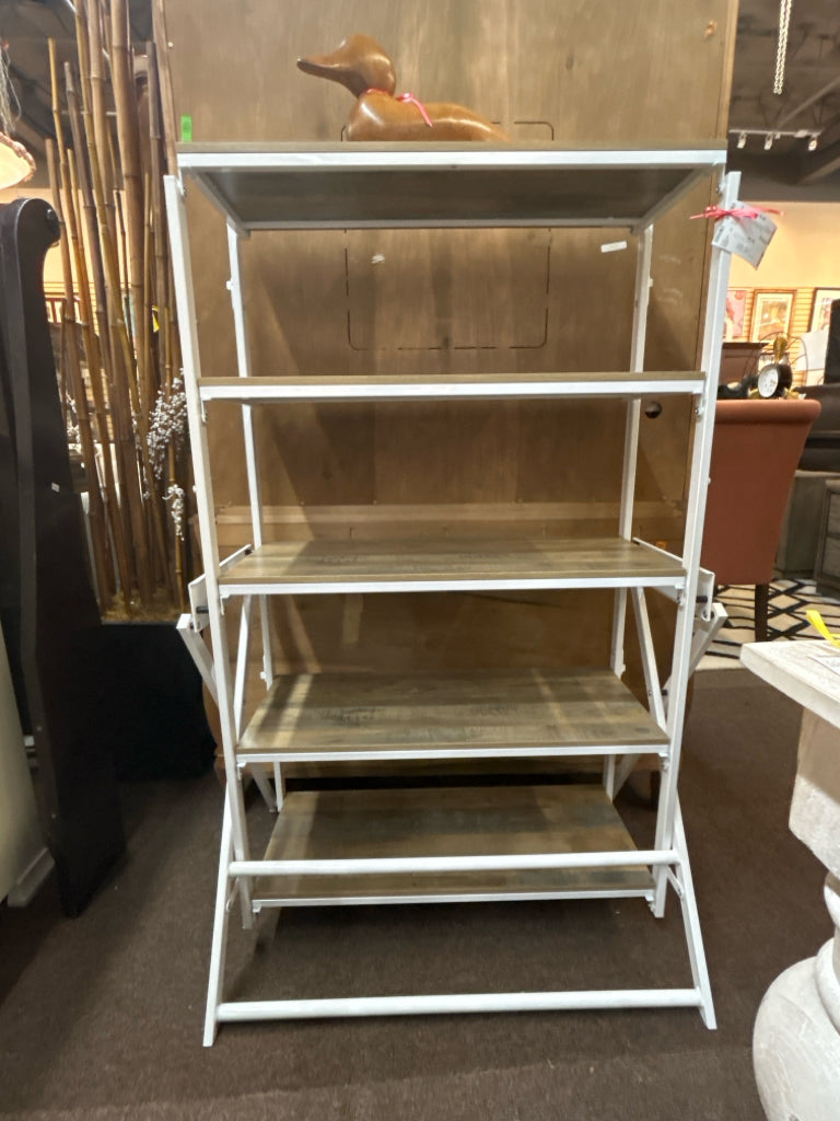 White Metal & Wood 5-Tier Bookshelf - Converts to Console Table