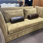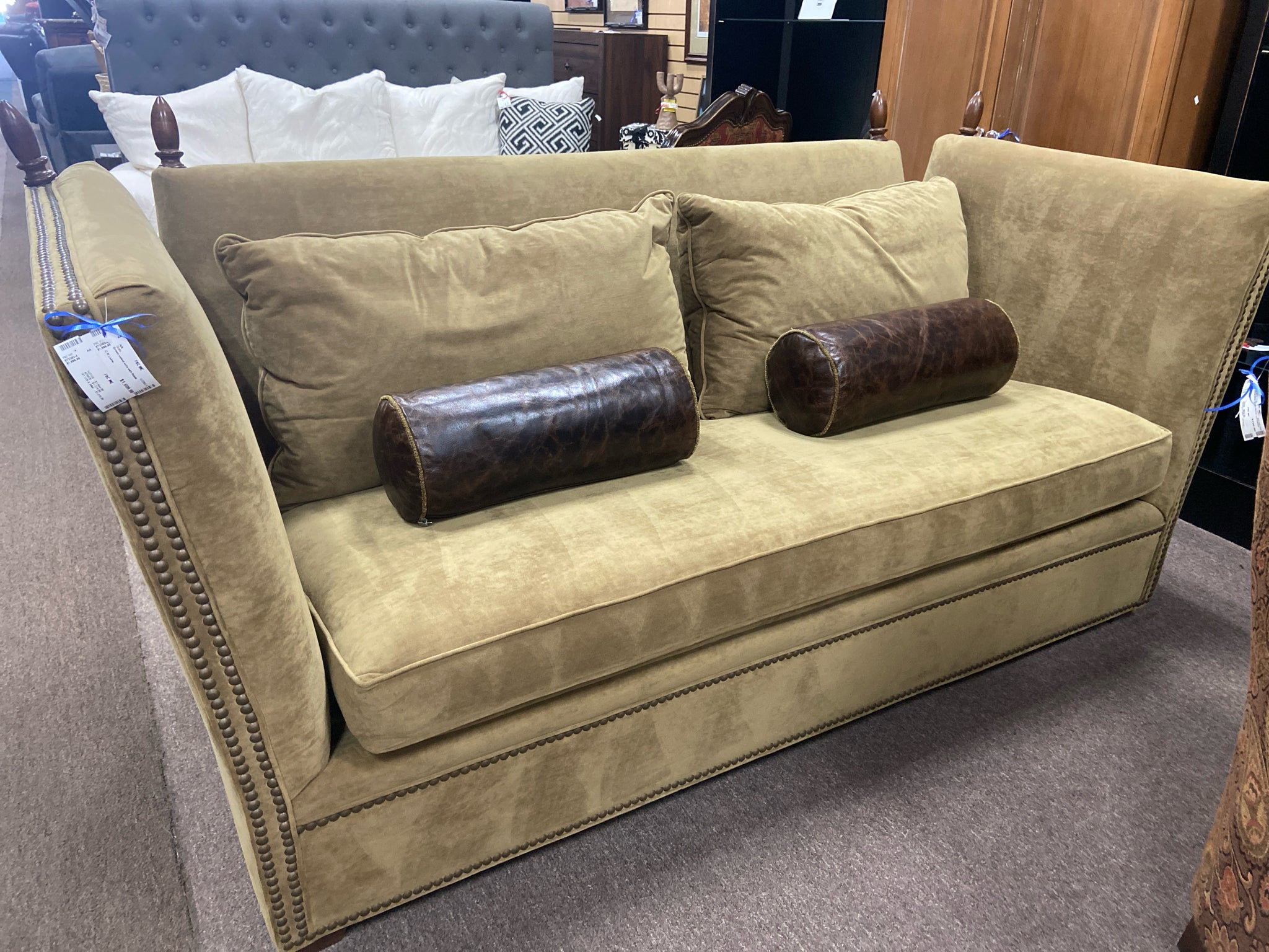 Green velvet sofa with finials