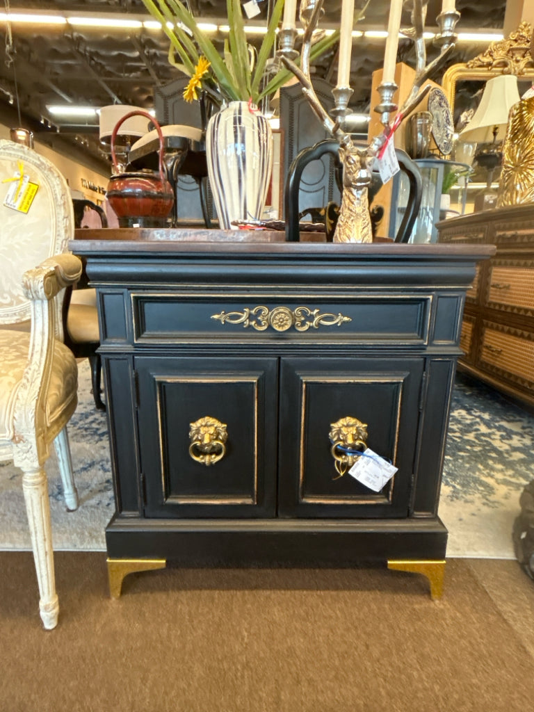 Small Black/Gold Painted Cabinet W/ 1 Drawer & 2 Doors