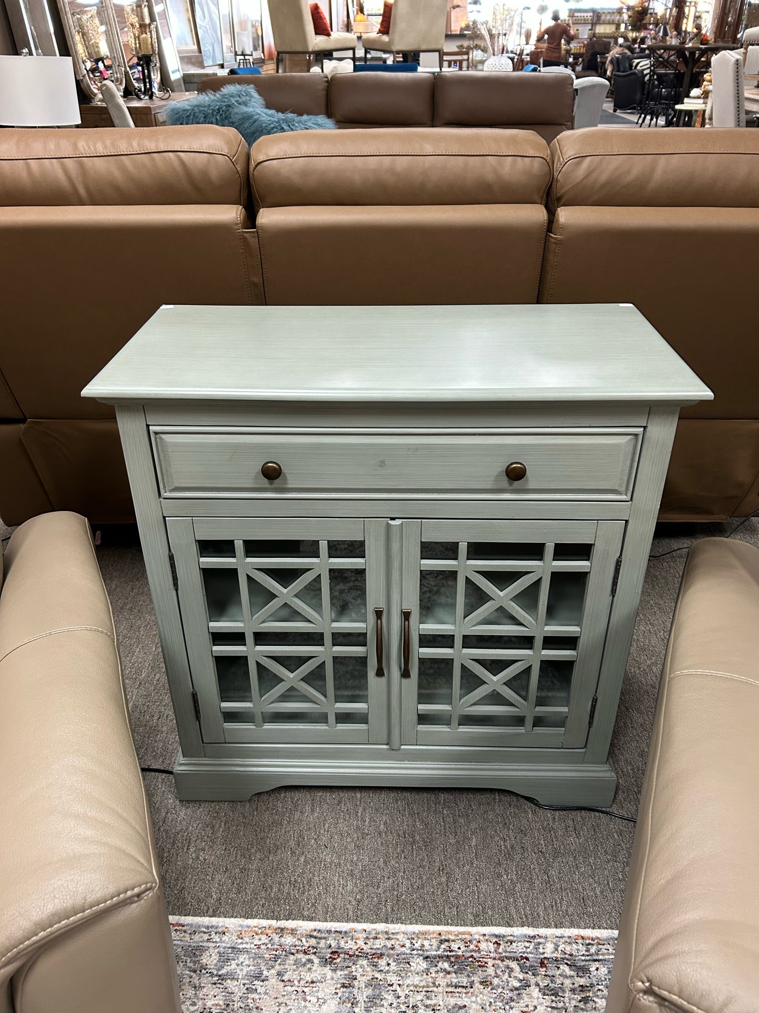 Pale Green 2 Glass Door Cabinet 32x15x32"