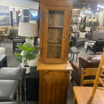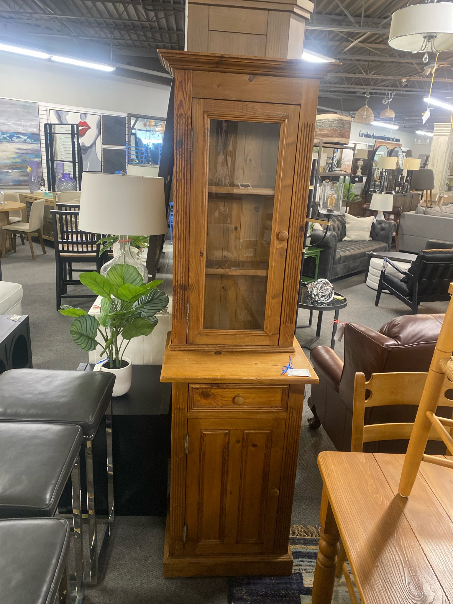 2 Pc Antique Pine Cabinet With Glass Door Hutch 23" x 79"
