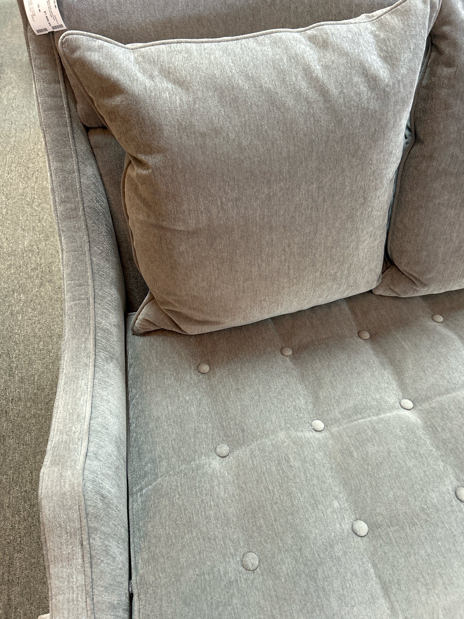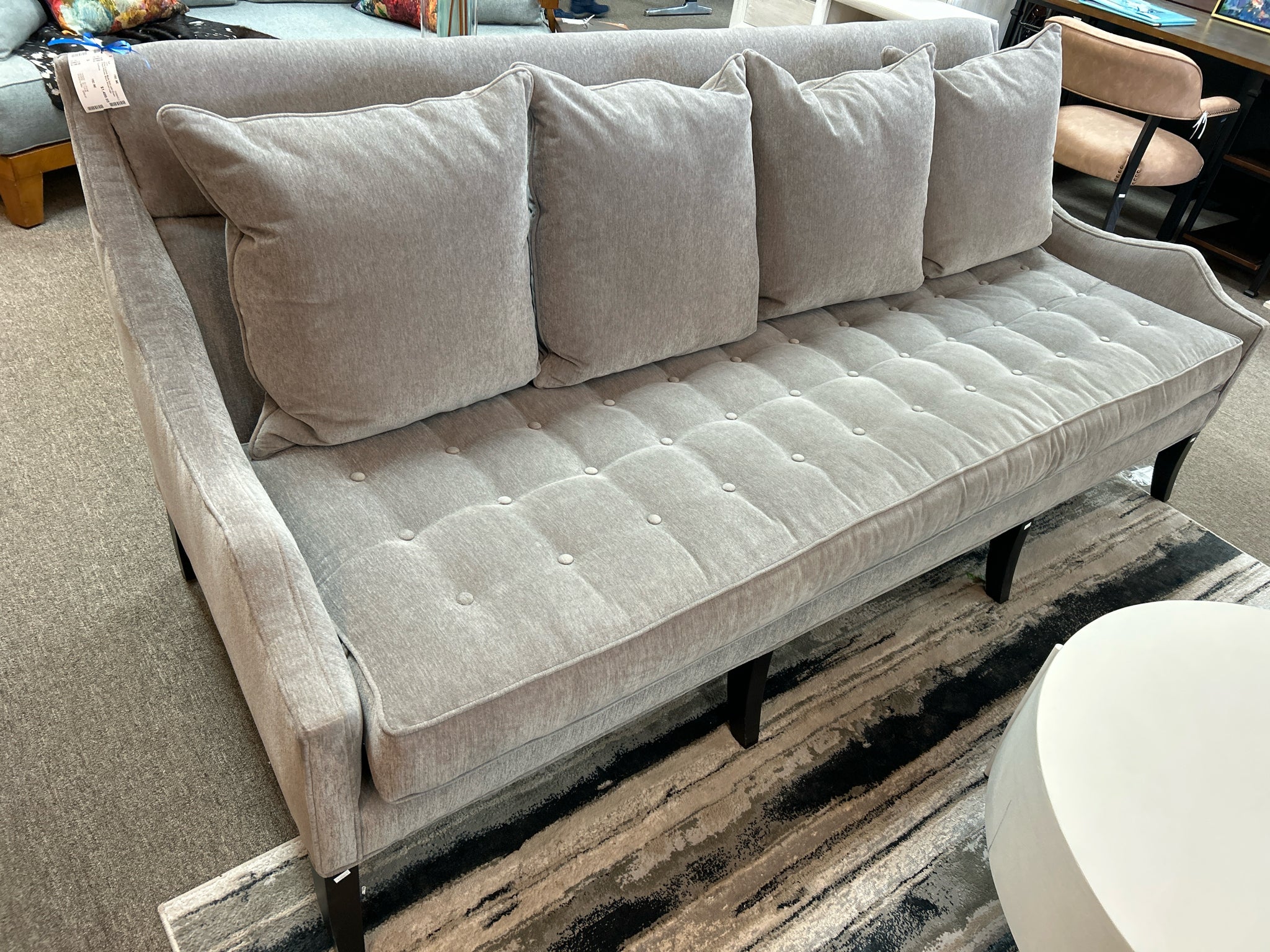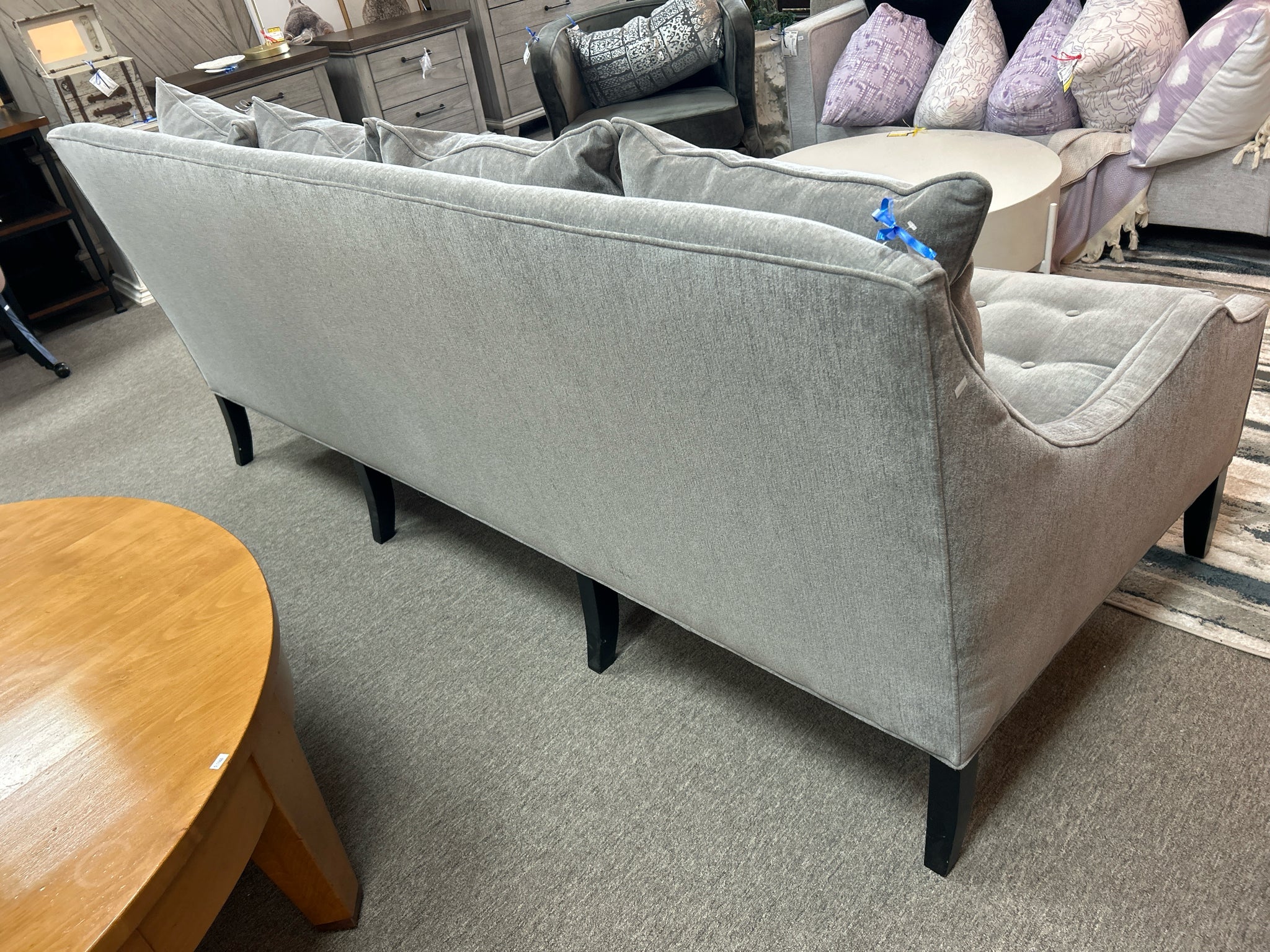 Grey Custom Made Sofa with Down Filled Pillows, Black Wood Legs