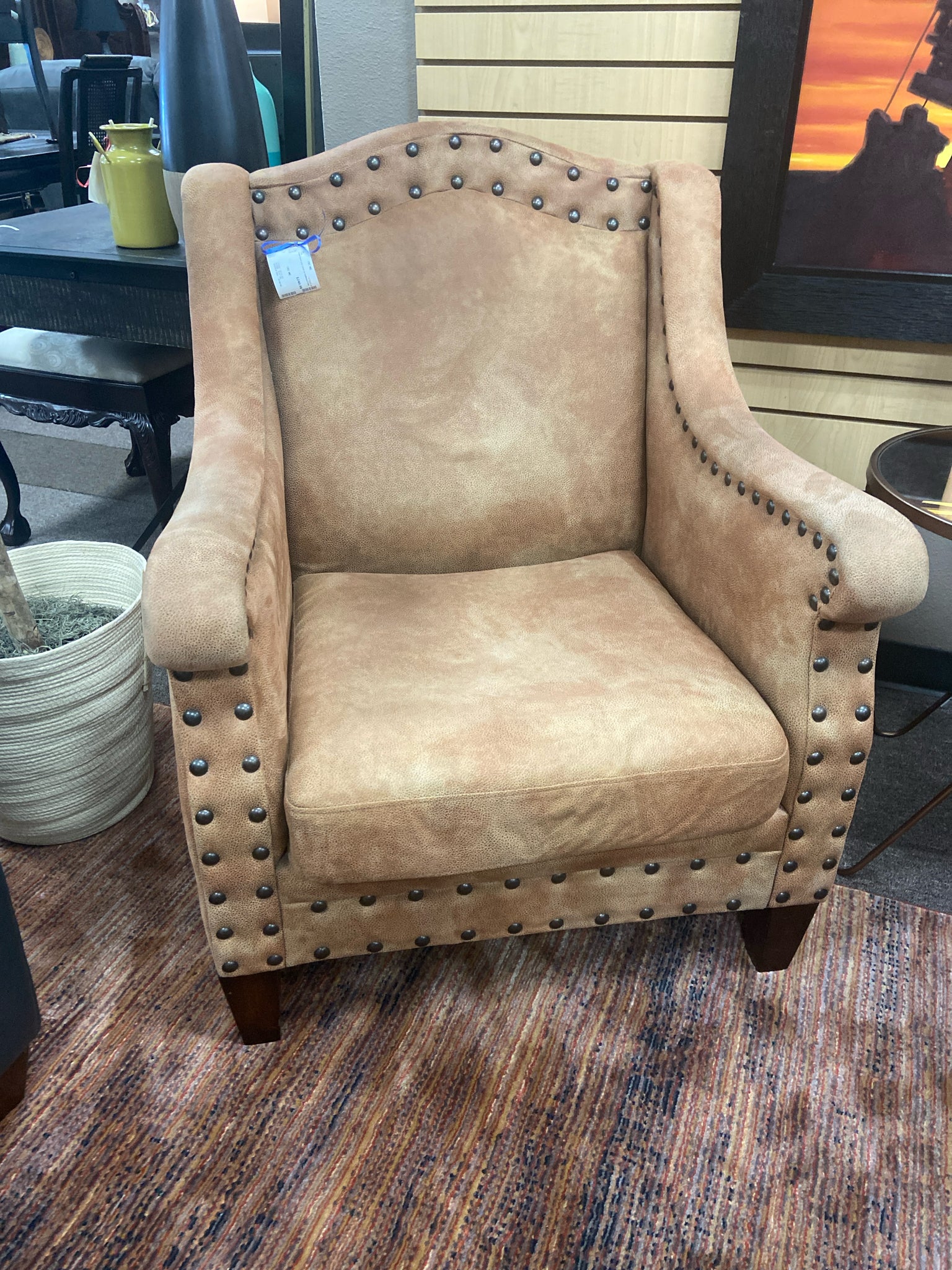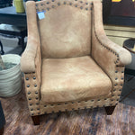 Brown fabric arm chair w nailhead trim
