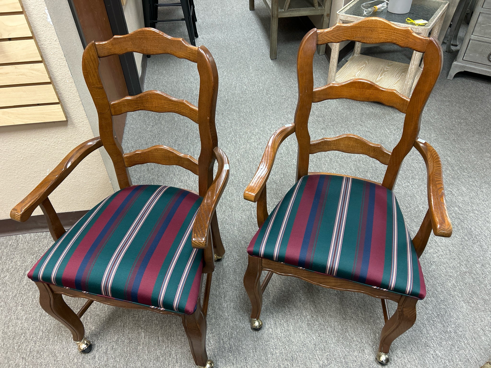 SET of 4- Navy Plaid Seat/Wood Chairs on Casters