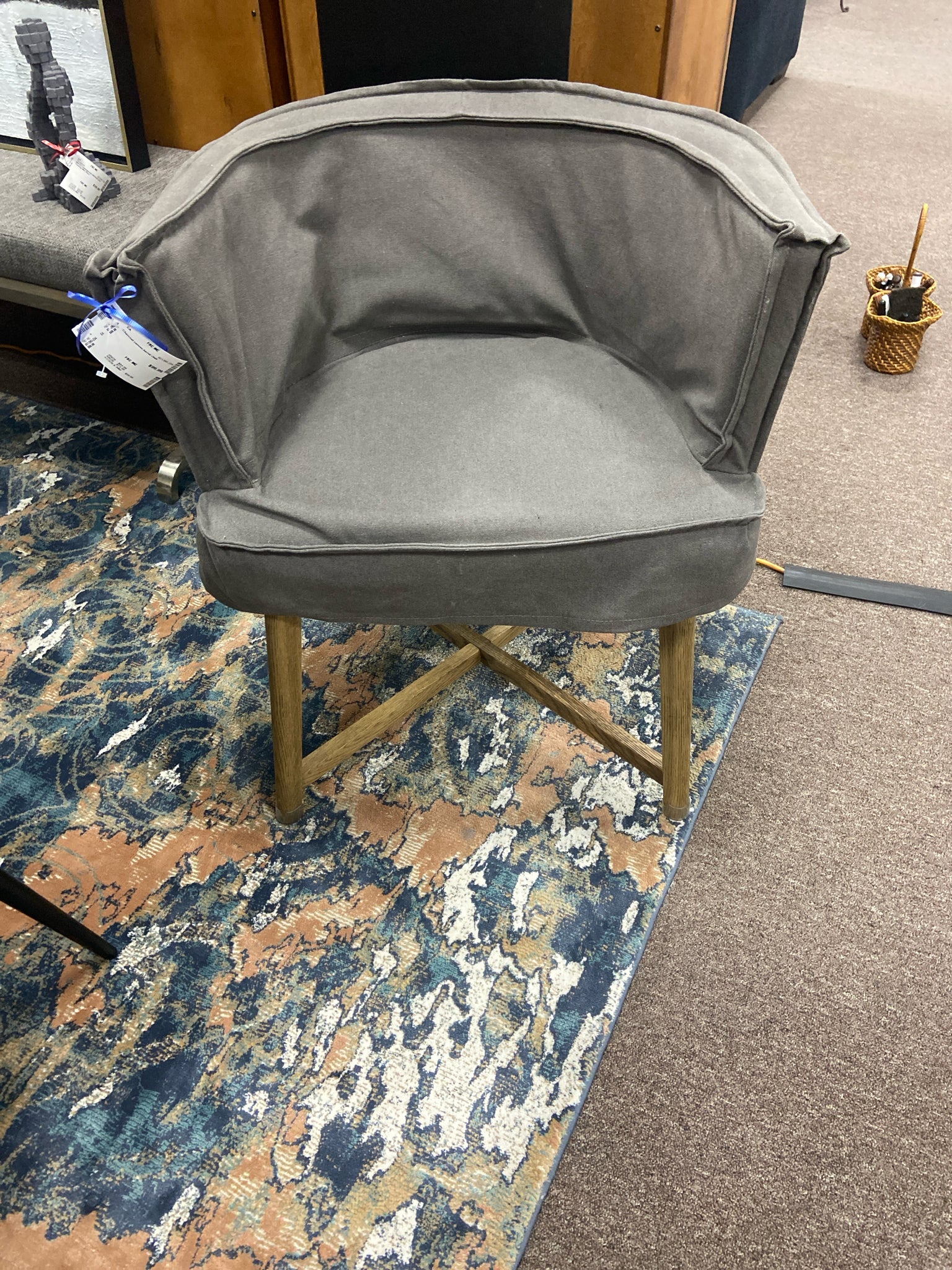 Charcoal canvas barrel chair