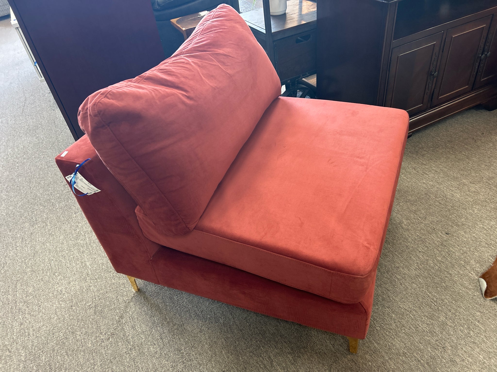 AS IS- Burnt Orange Velvet Chair with Gold Legs. 34"x33" Tall. (Light Stains on Fabric)