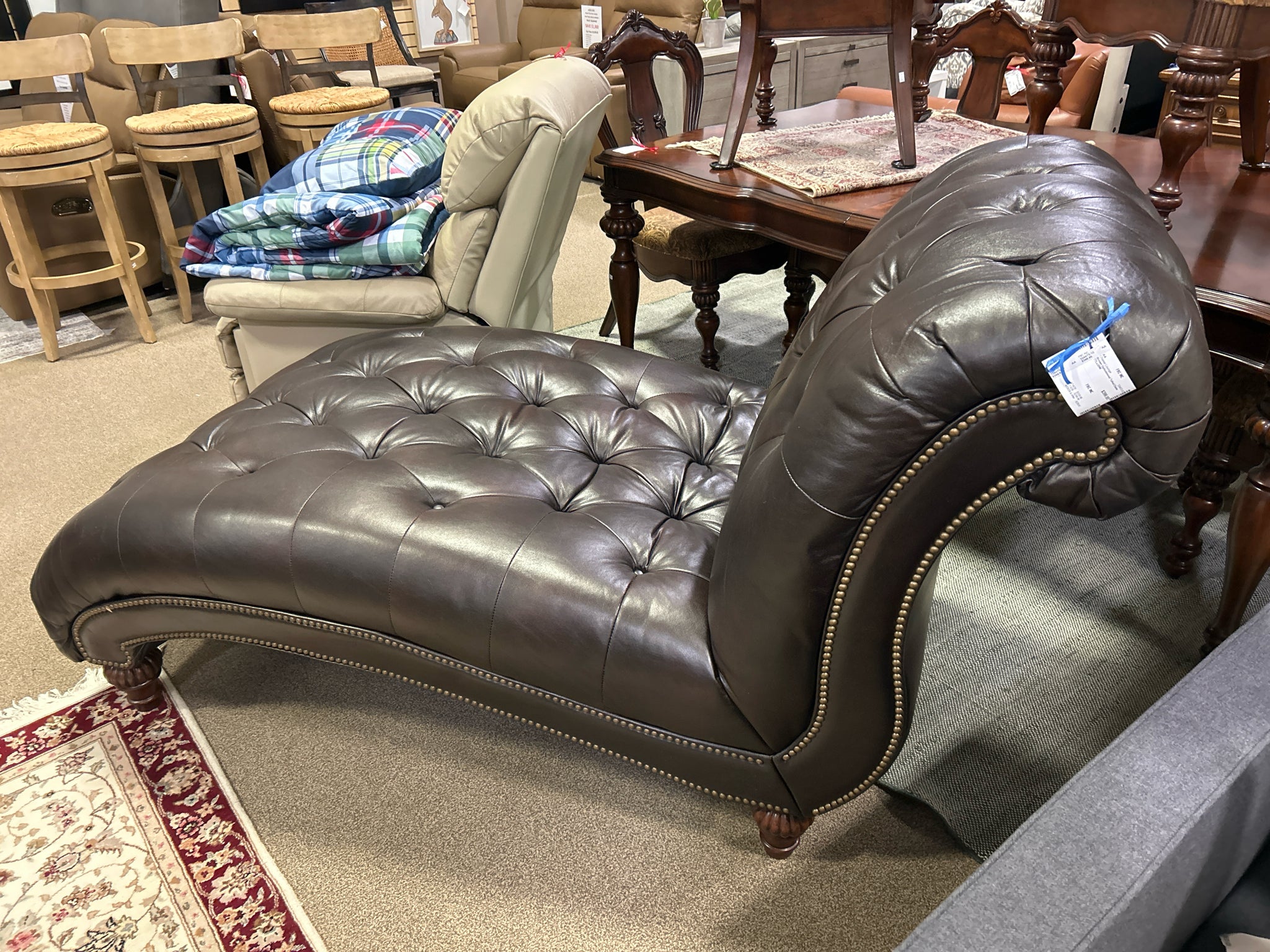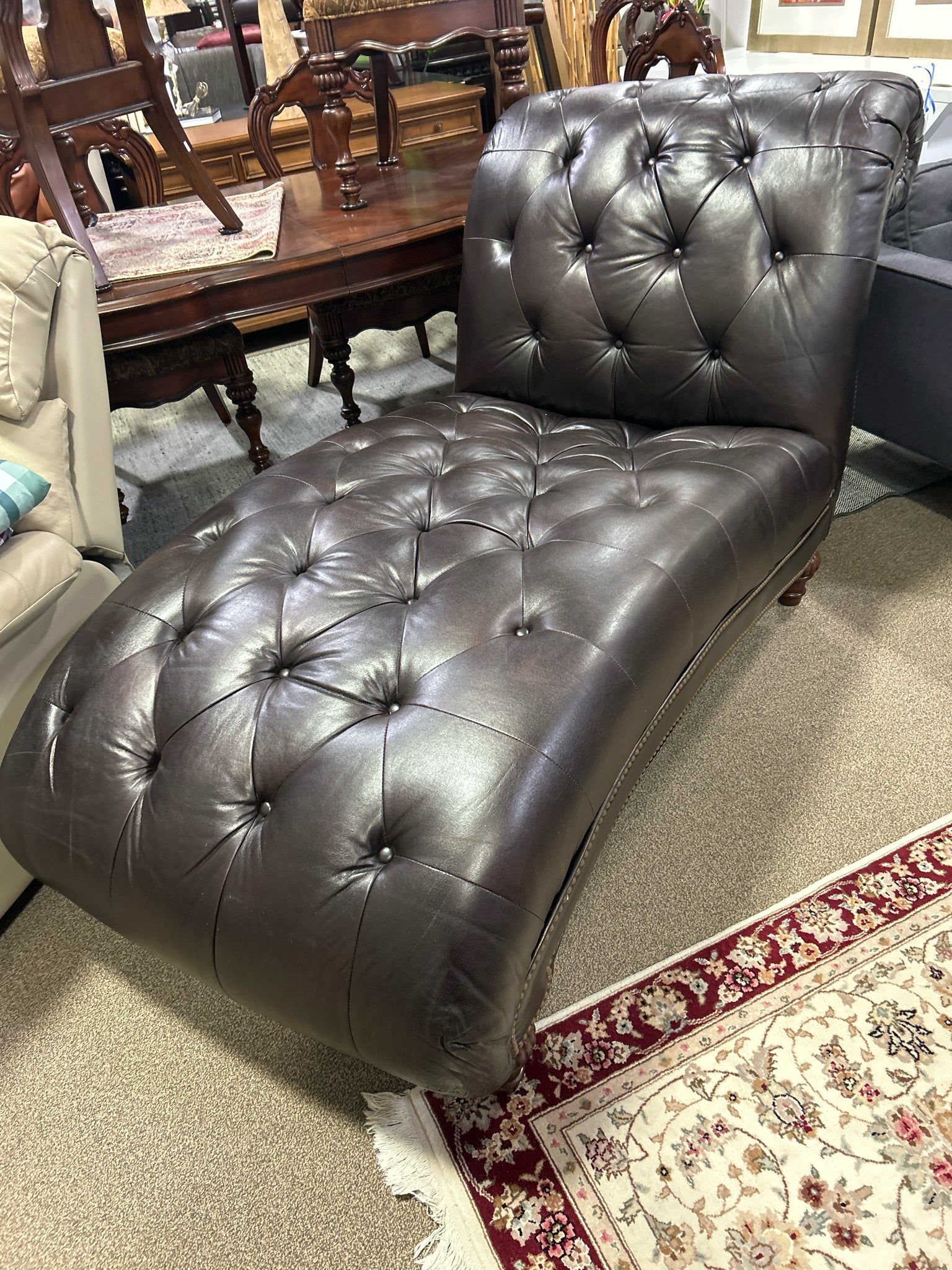 Brown Upholstered Tufted Chaise 77Lx35W