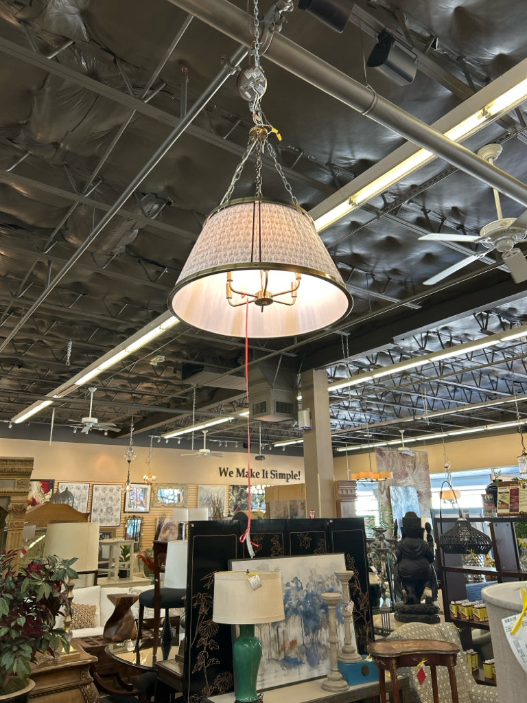 Pleated Fabric Flared Drumshade & Brass Finish 6-Light Chandelier 21"Wide