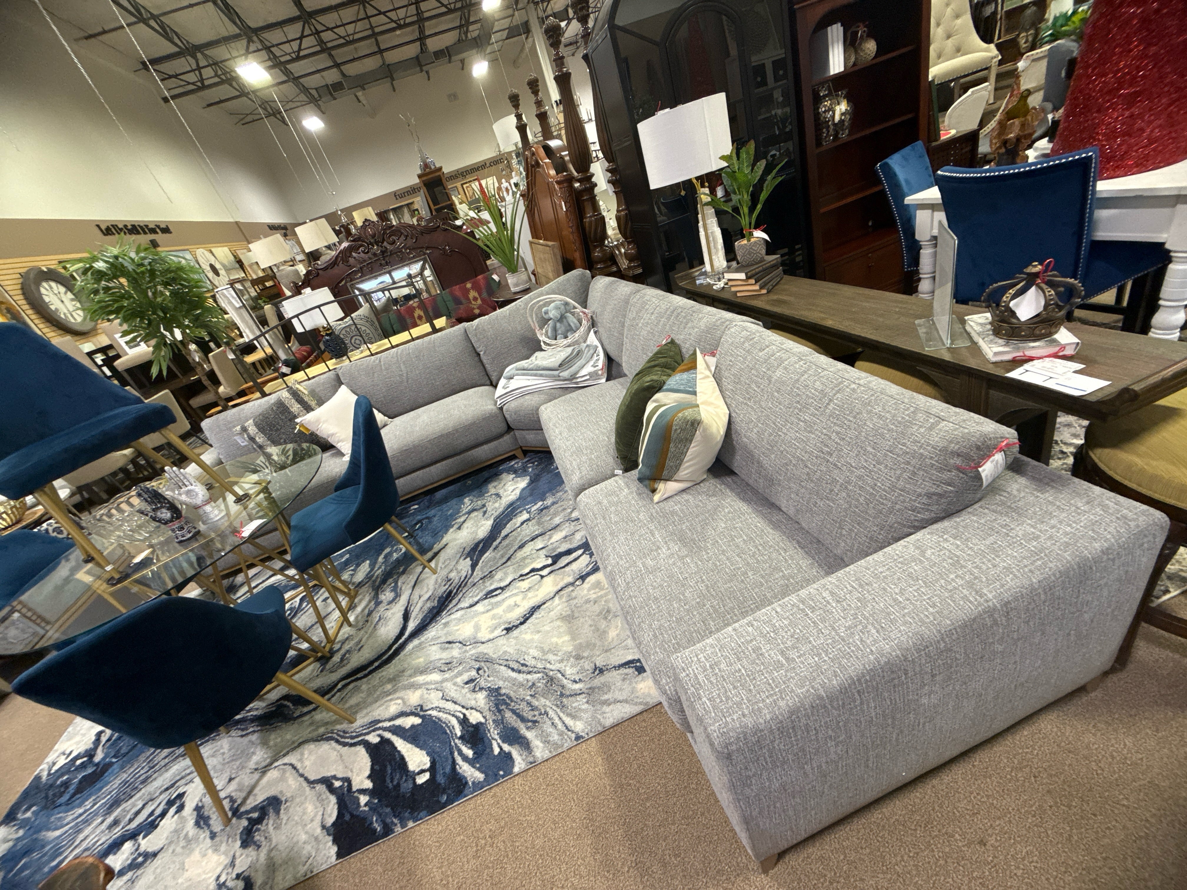Gray Upholstered Sectional 32” H x 132.3” W x 132.3” D