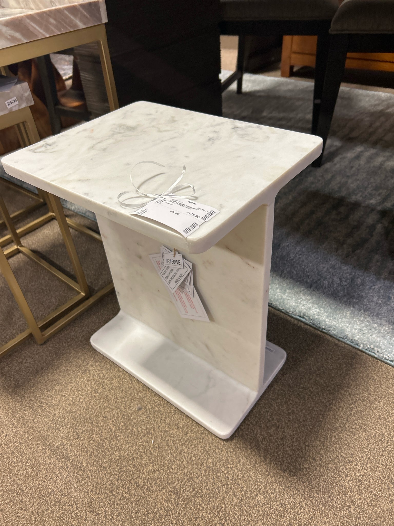 IR150WE 1-BEAM SOLID WHITE MARBLE ACCENT TABLE