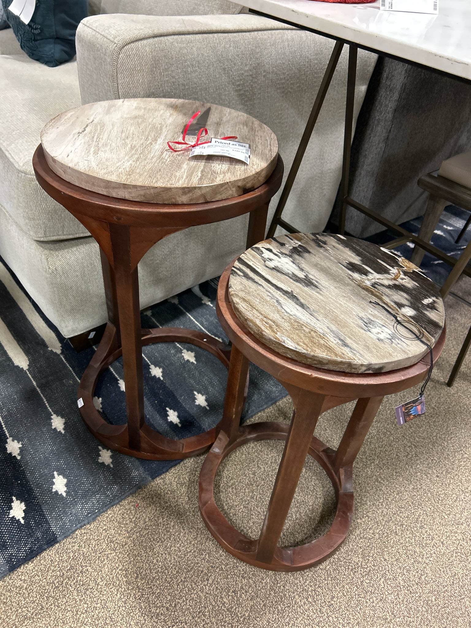 22425 Set of 2 20/23" Petrified Wood Top Accent Table