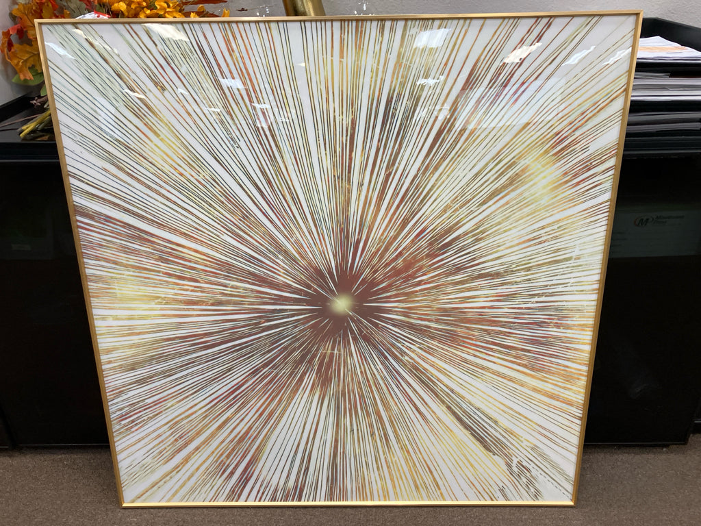 30282-LARGE- GOLD METAL FRAMED GOLD SUNBURST ART 39.5X39.2
