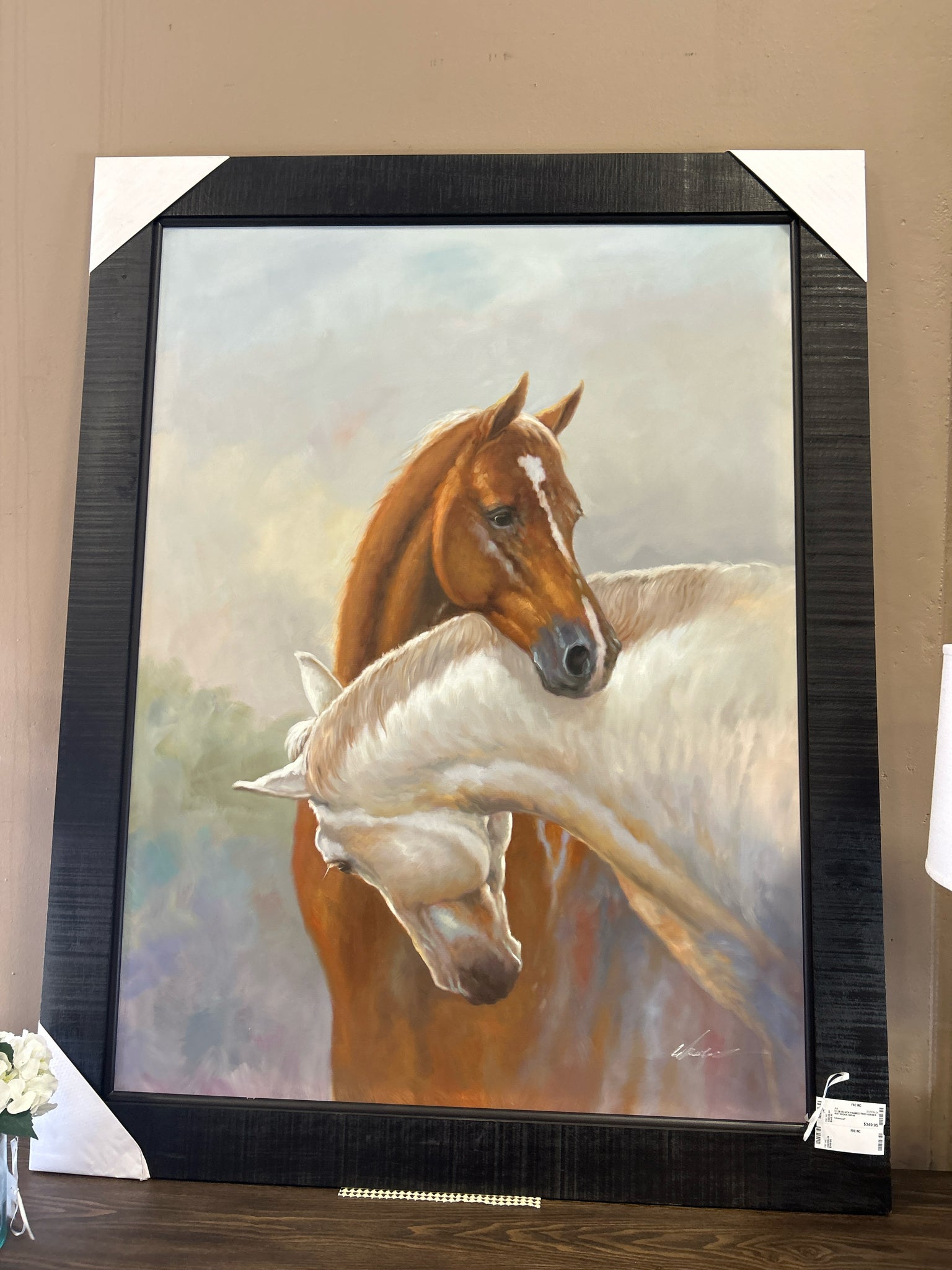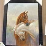H128-BLACK FRAMED TWO HORSES ART WORK 56X44