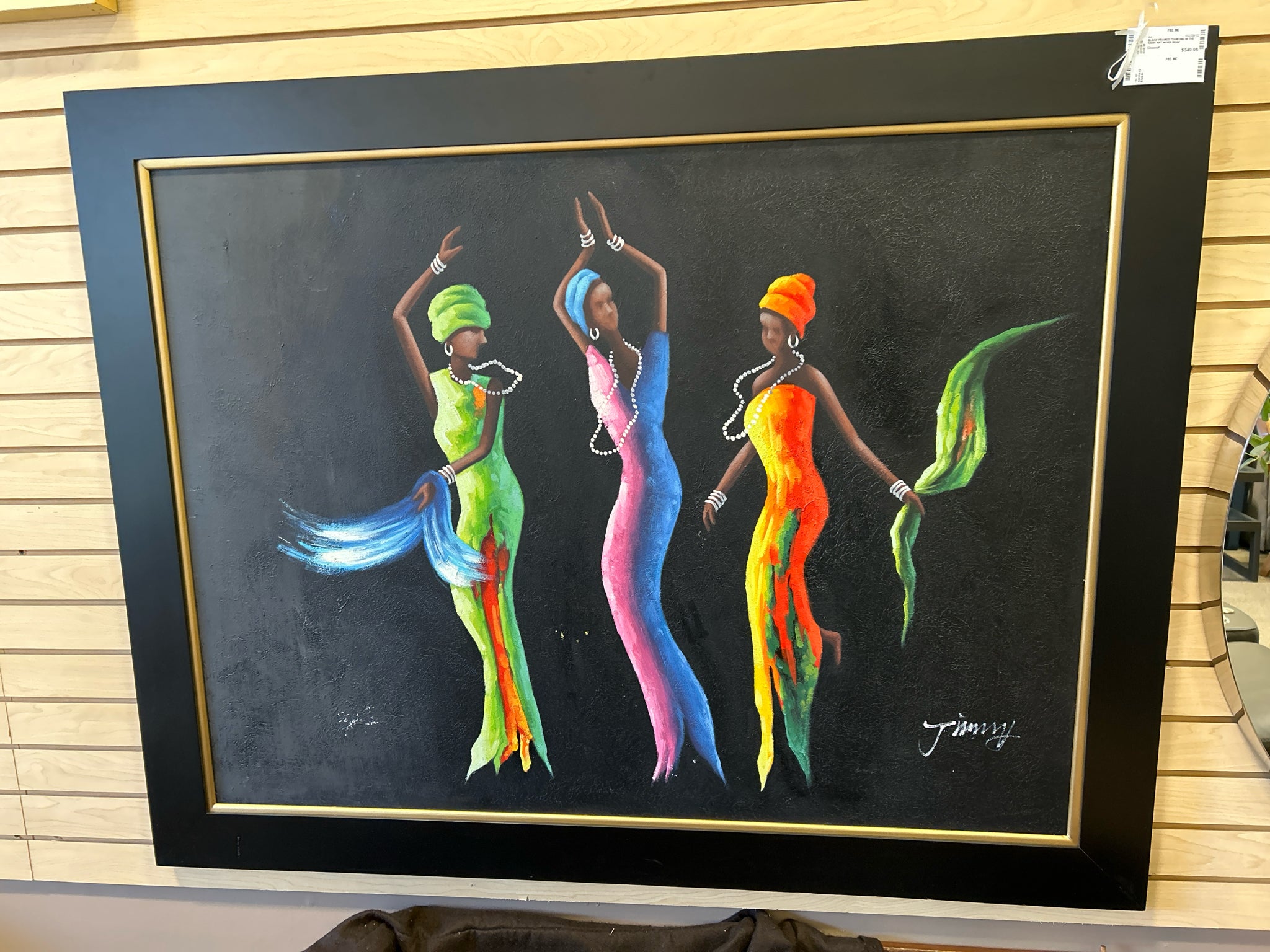 BLACK FRAMED "DANCING IN THE RAIN" ART WORK 56X44