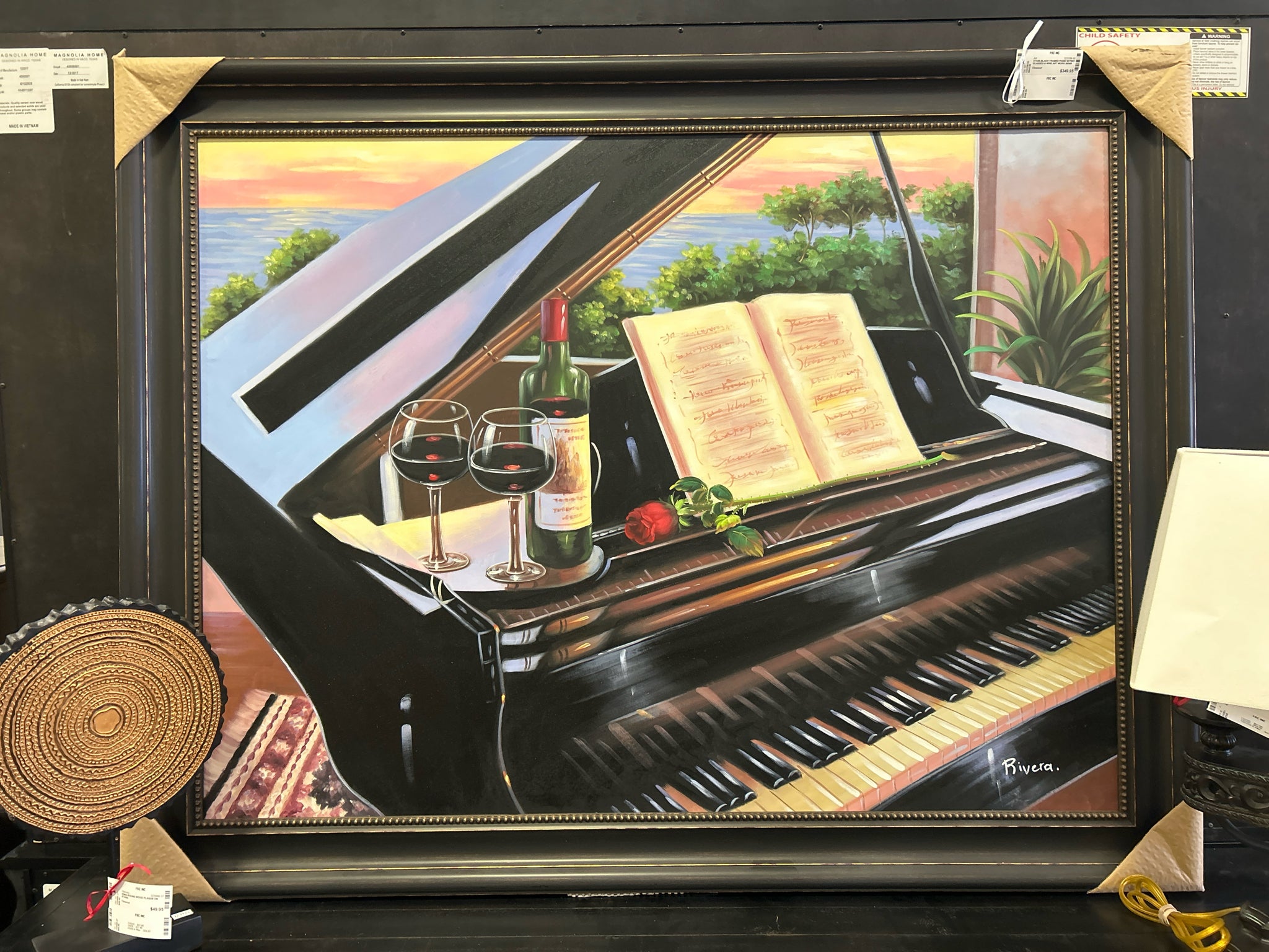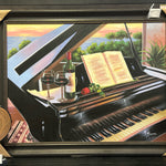 K1546-BLACK FRAMED PIANO W/TWO GLASSES & WINE ART WORK 56X44
