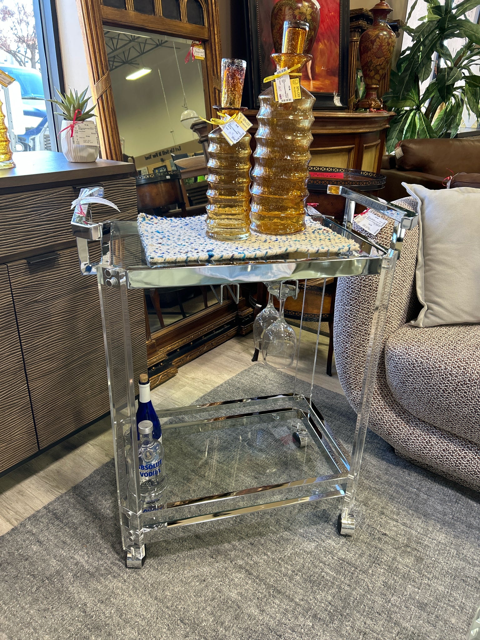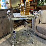 AE300C ACRYLIC CHROME/GLASS TWO TIER BAR CART ON CASTERS