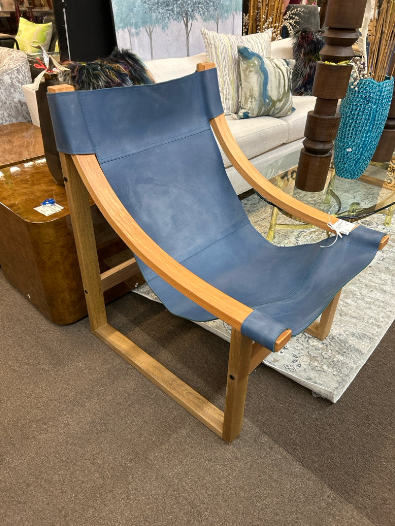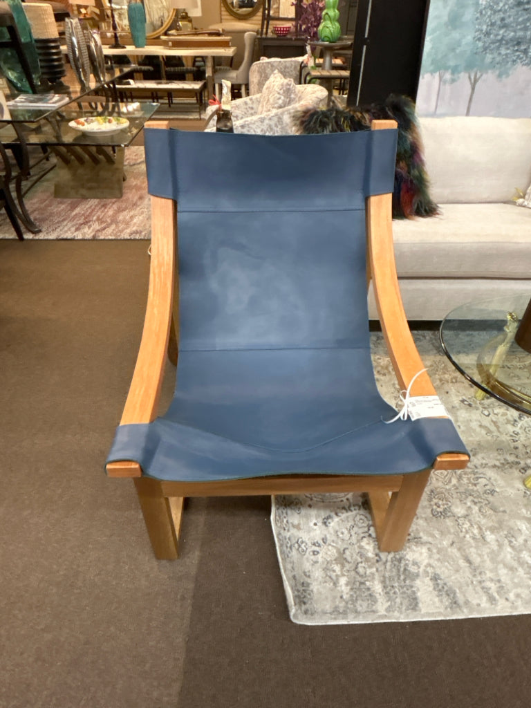 LI1150CNSC Sling Chair Cobalt Leather with Natural Wood Frame