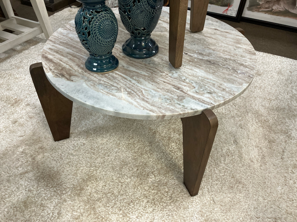 SV100NC-SHAVON BROWN MARBLE TOP COFFEE TABLE W/WOOD BASE