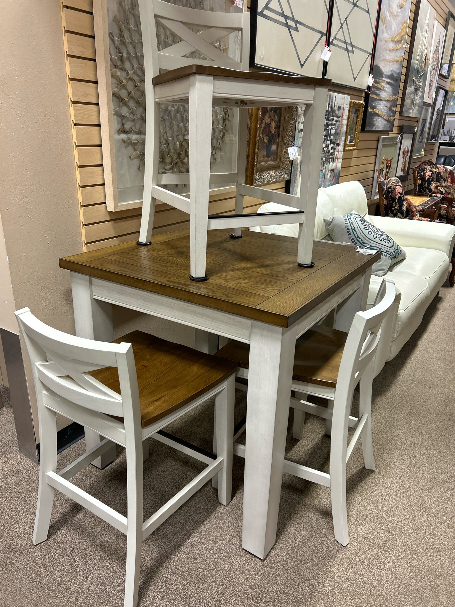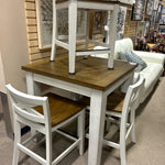 LN5000 LINDALE TWO TONE RUSTIC WHITE/HONEY FINISH 36"SQUARE COUNTER TABLE W/4 STOOLS