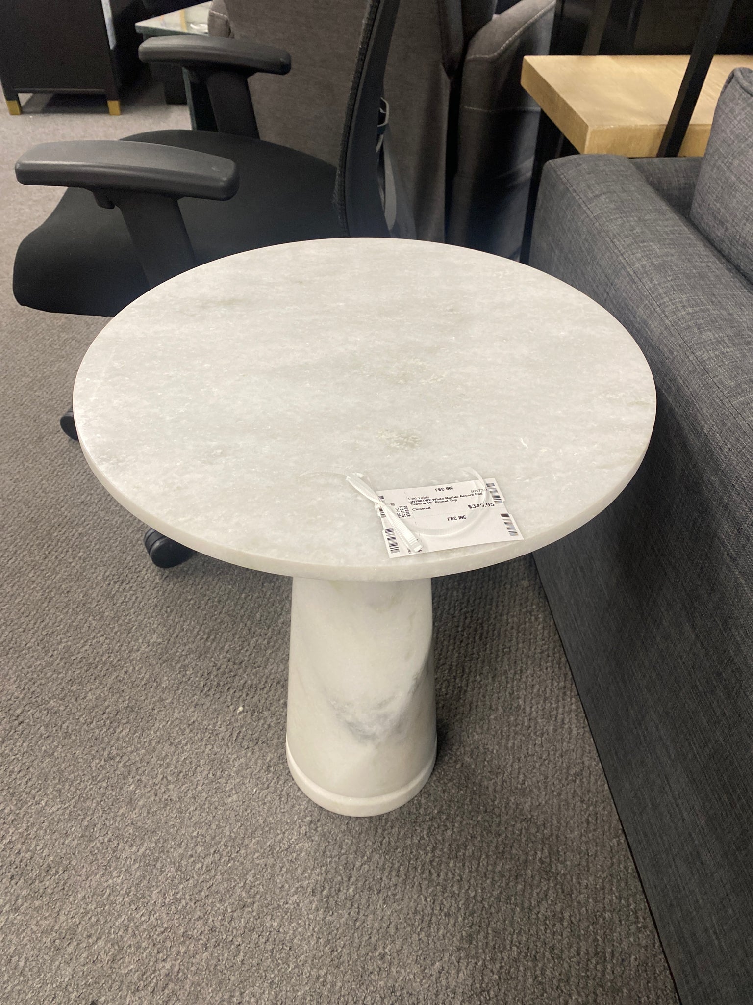 JN180TWE White Marble Accent End Table w 18" Round Top