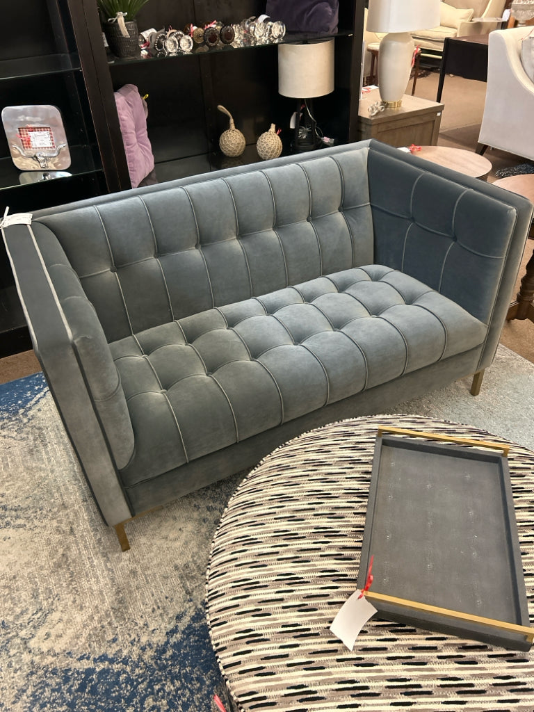 IC100LGY Grey Velvet Channel Stitched Loveseat