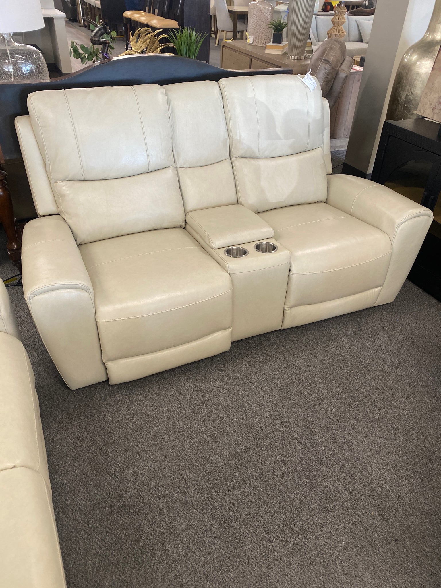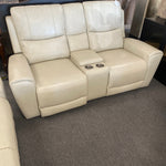 LL950CLI Ivory Top-Grain Leather Dual-Power Reclining Loveseat w Console